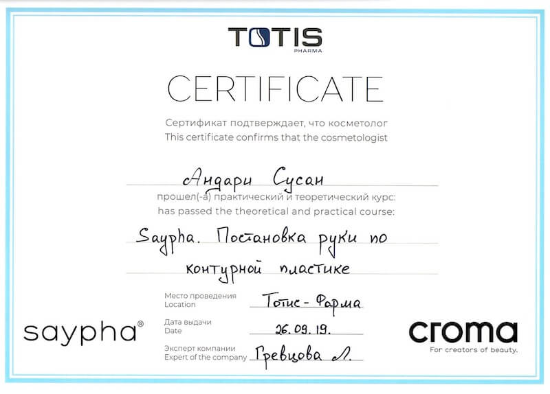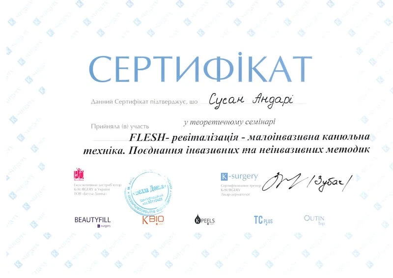 Дуже вдячна лікарю косметологу Сусан Андарі. Дуже професійна, ввічлива та чемна особа.