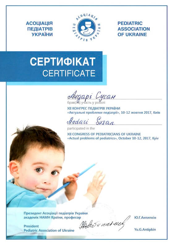 Дуже приємна лікарка Андарі Сусан. Все чітко пояснила, до дитини дуже лагідно підходила. Сама клініка справила приємне враження (перший візит).