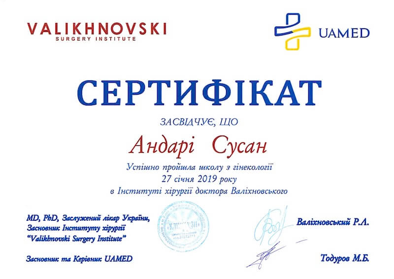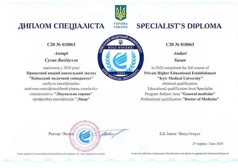 Моя подяка і повага найкращому лікарю Сусан Андарі. Професіоналізм, увага, компетентність — все на найвищому рівні. Звернусь до неї не один раз і буду рекомендувати.