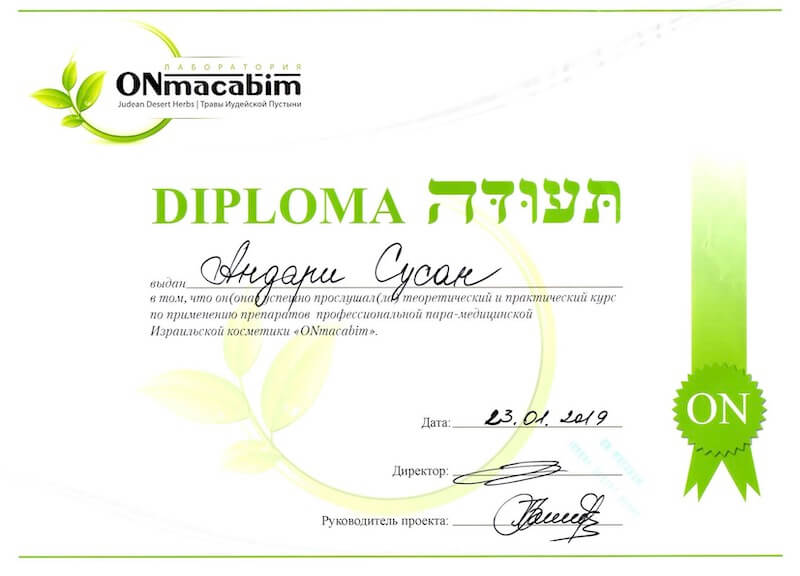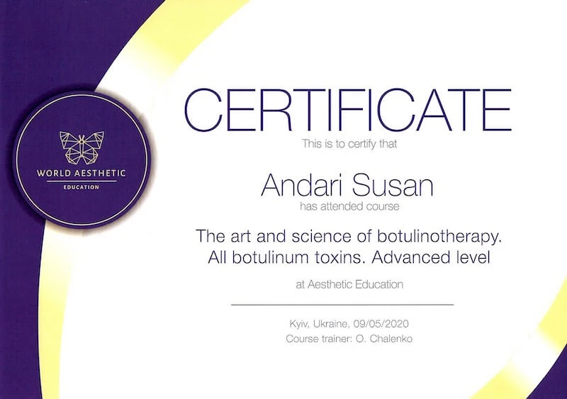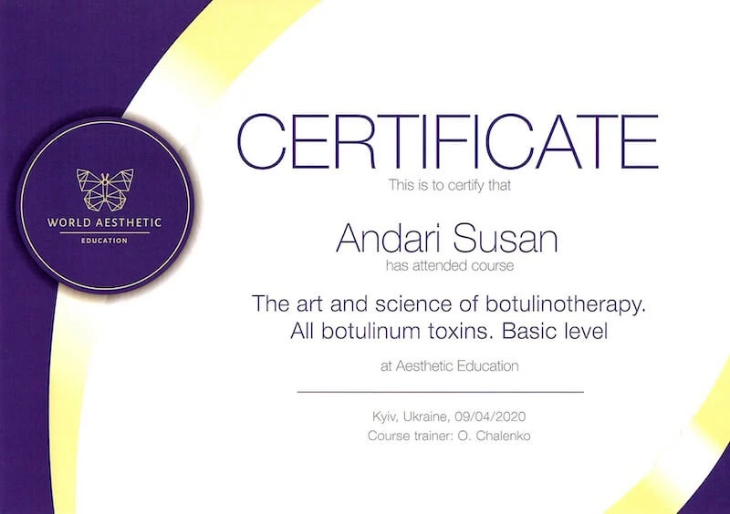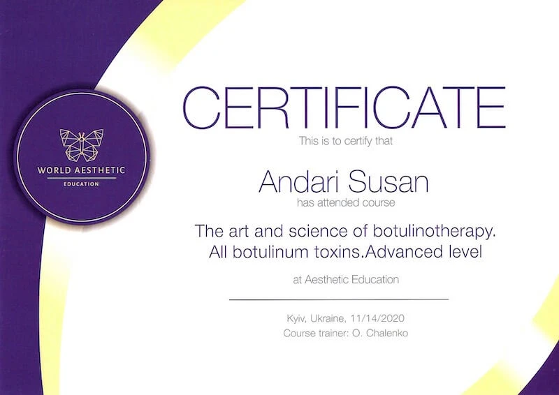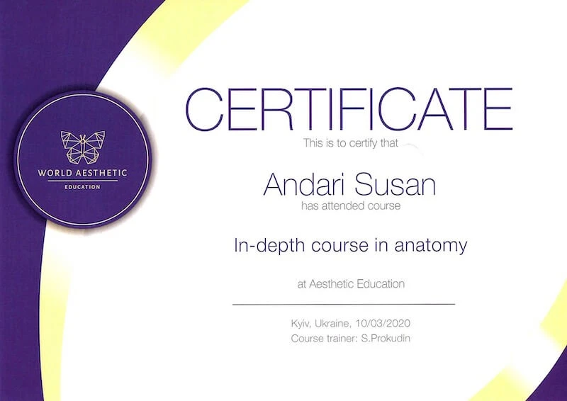 • Курс «Естетична косметологія та дерматологія», спеціальність «Косметолог-естетист», навчальний центр Студія-АРТ, 2019