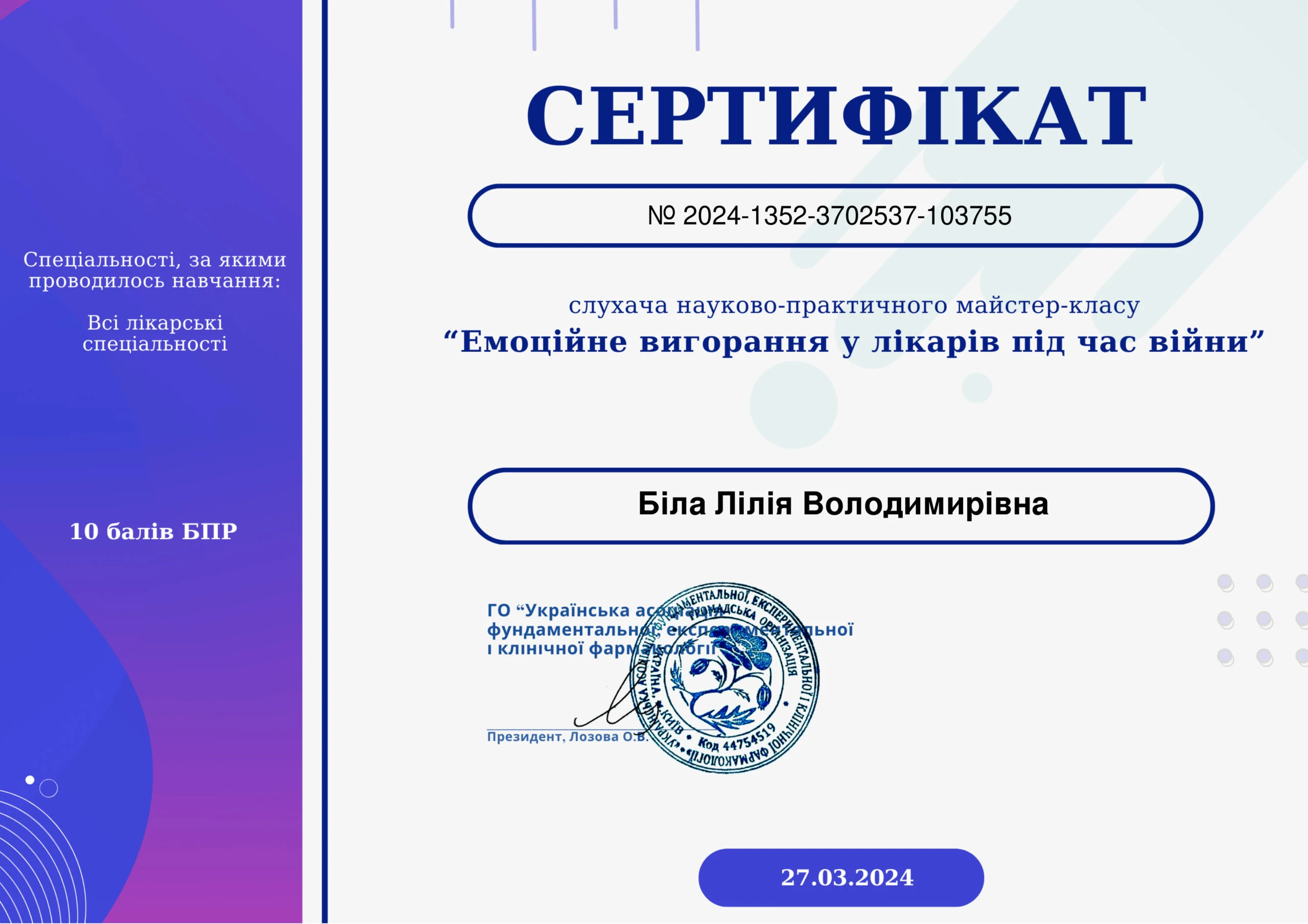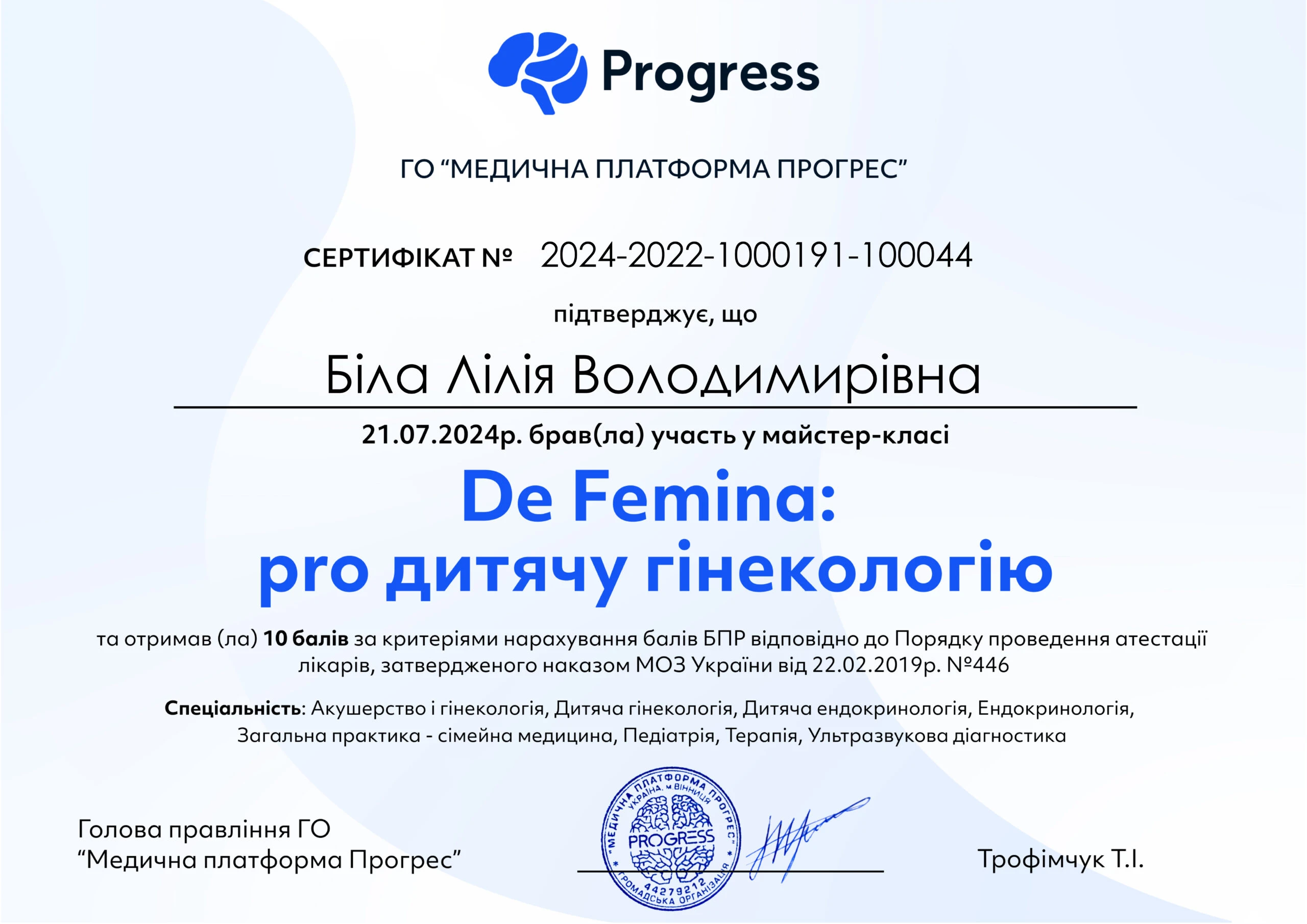 - ГО «Всеукраїнська асоціація безперервної професійної освіти лікарів та фармацевтів» – «Клінічні посібники для акушер-гінеколога», 2023