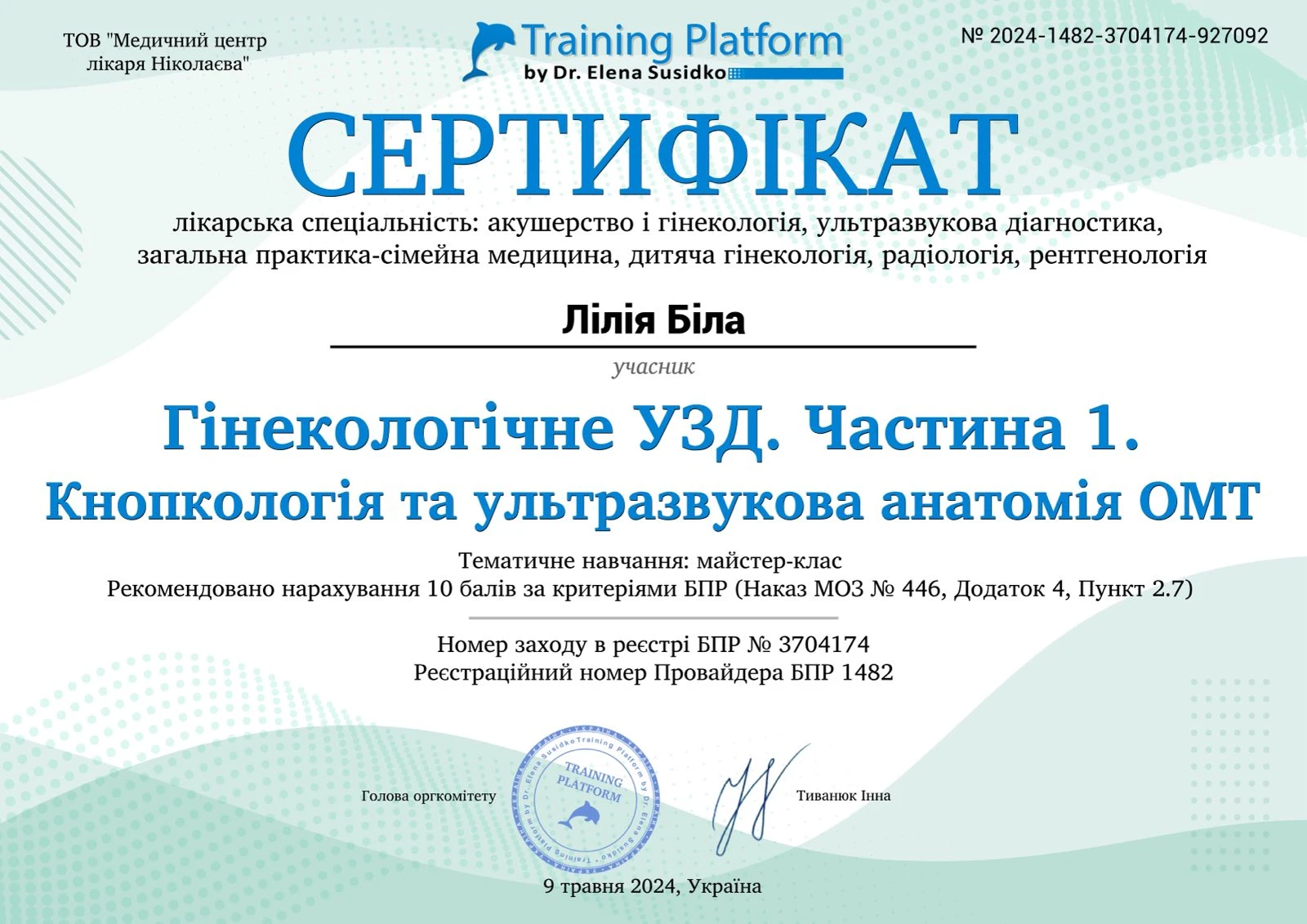 - Інтерактивний менторський онлайн-курс тривалістю 40 лекційних годин «УЗД у гінекології — це легко. I ступінь», 2023