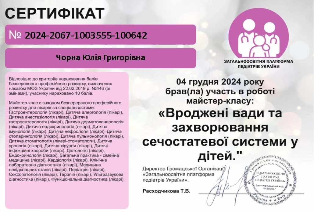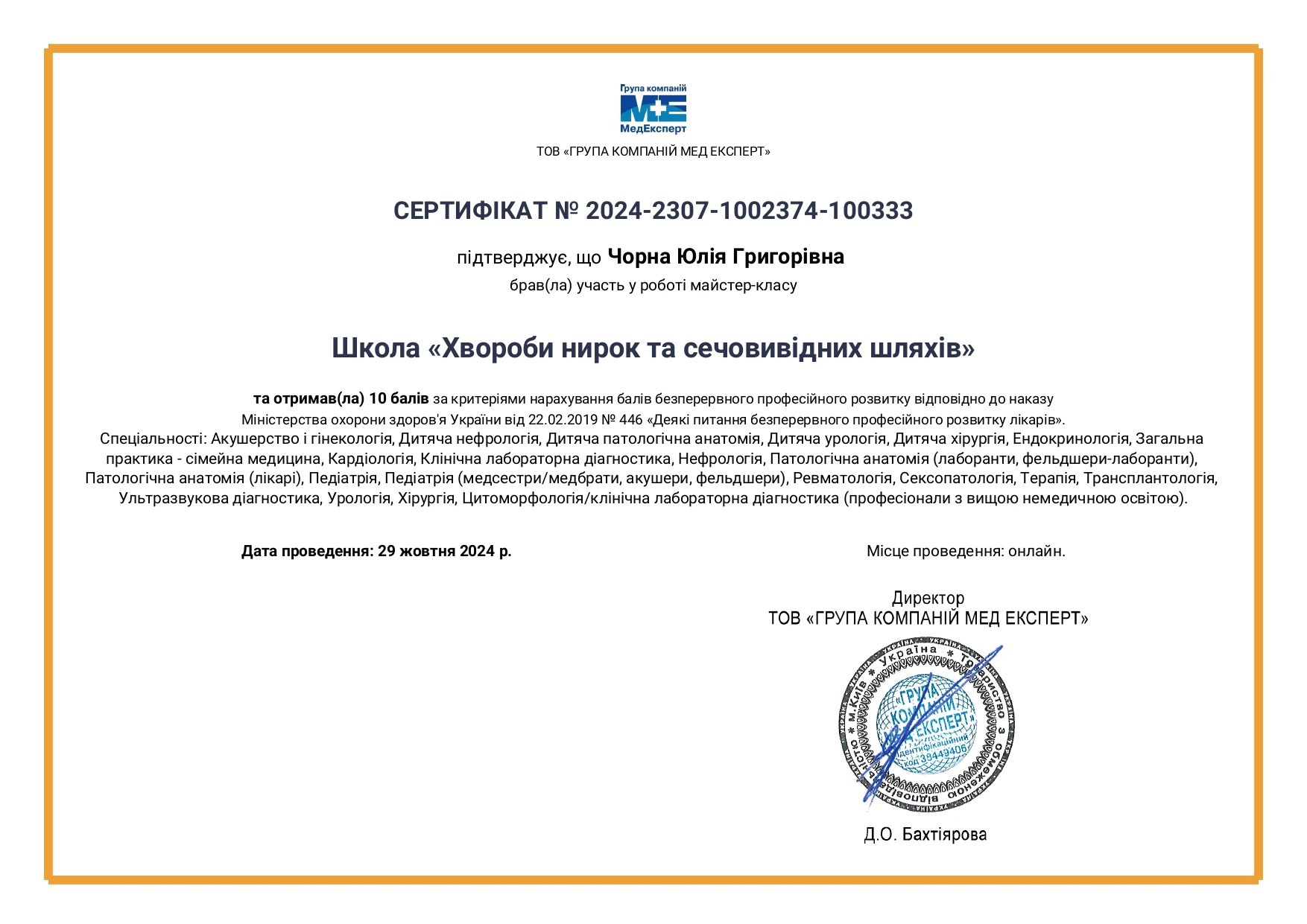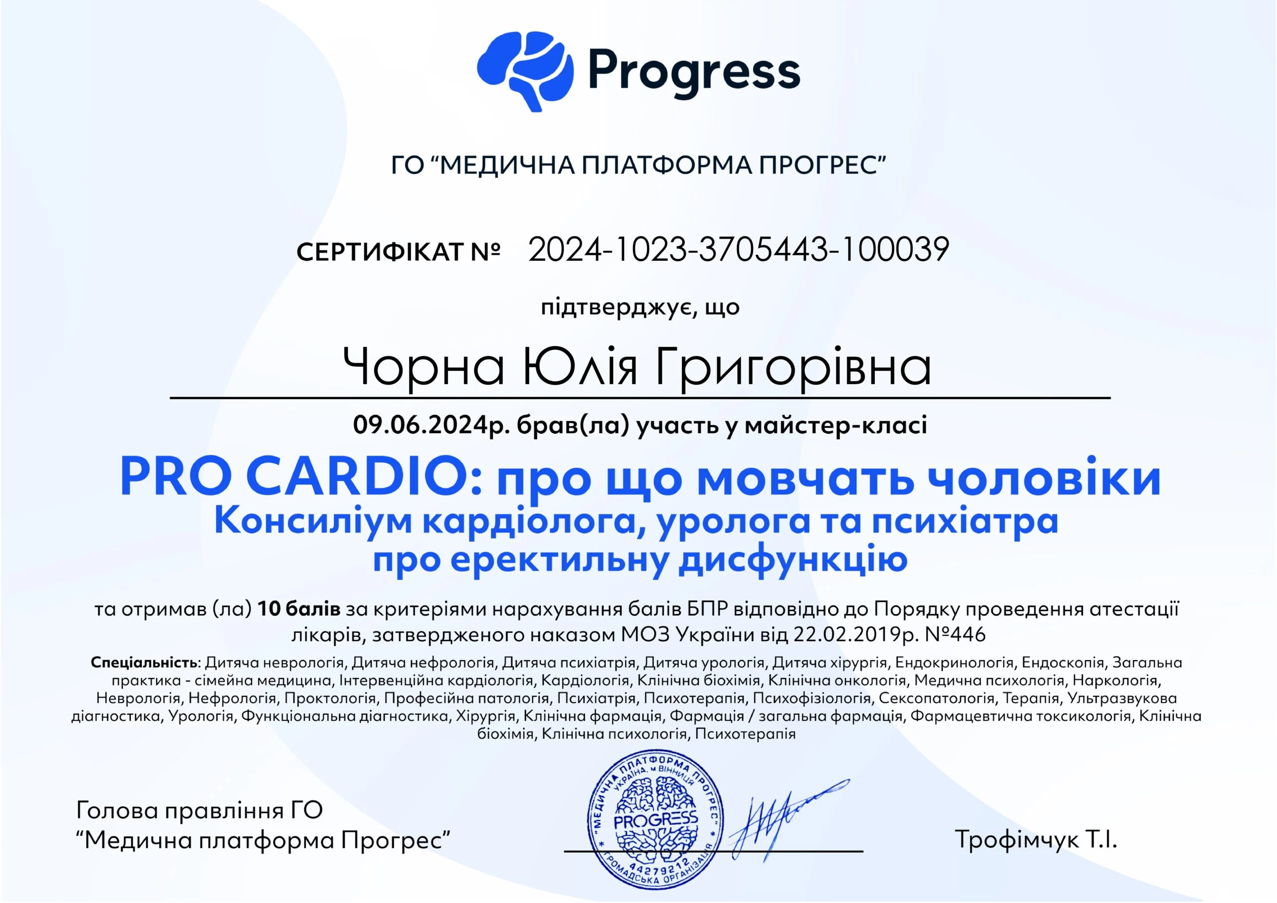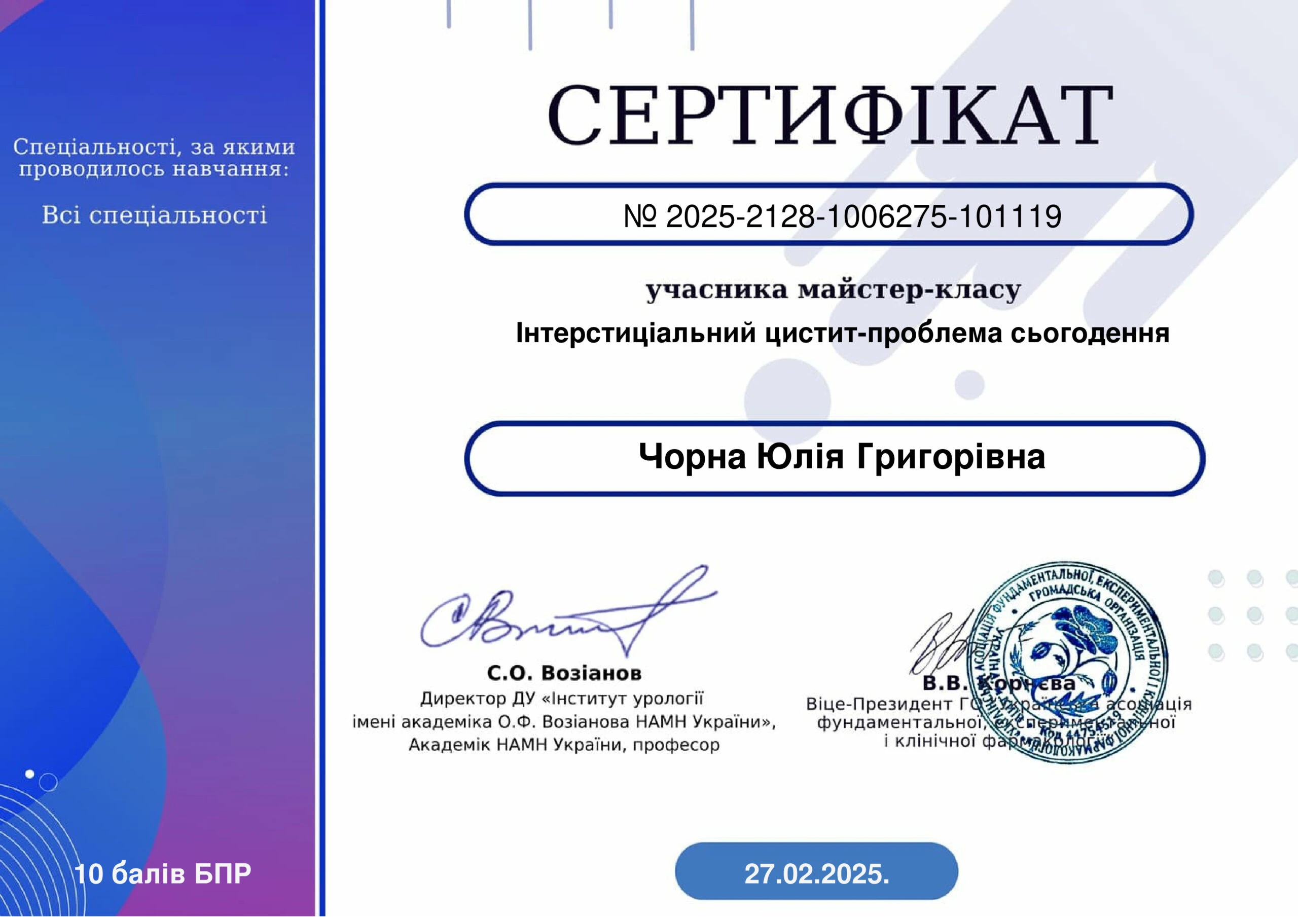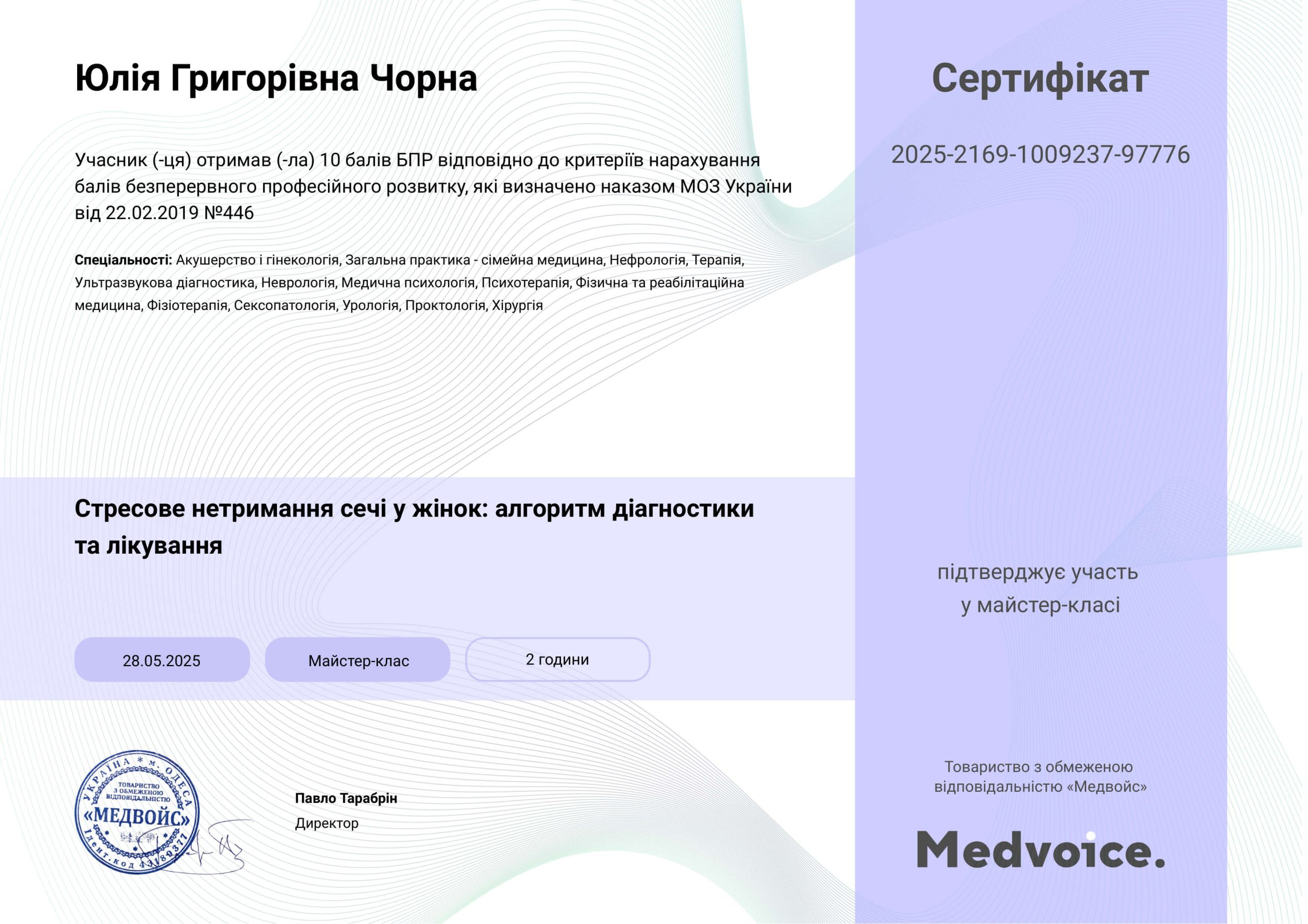 Лікар-уролог Чорна Ю.Г. Професіонал своєї справи, дуже рада що потрапила саме до неї.