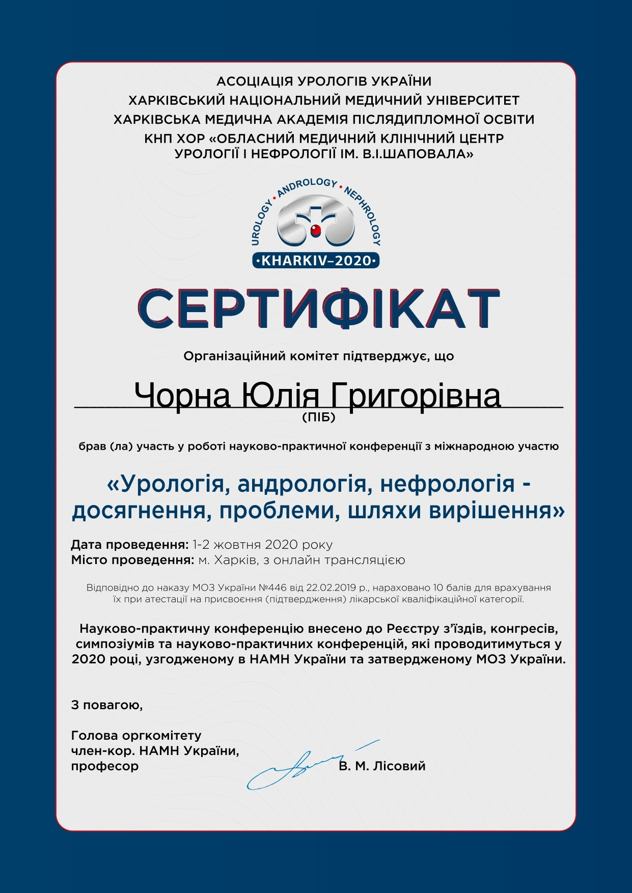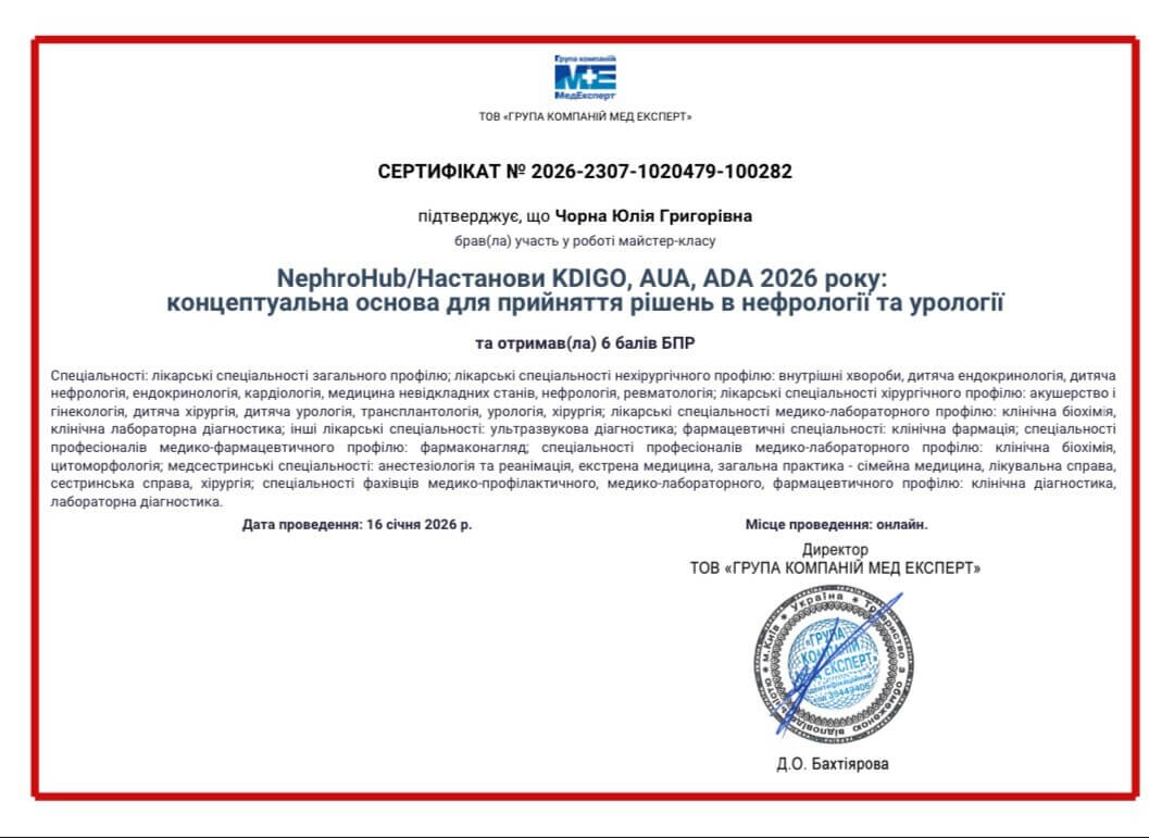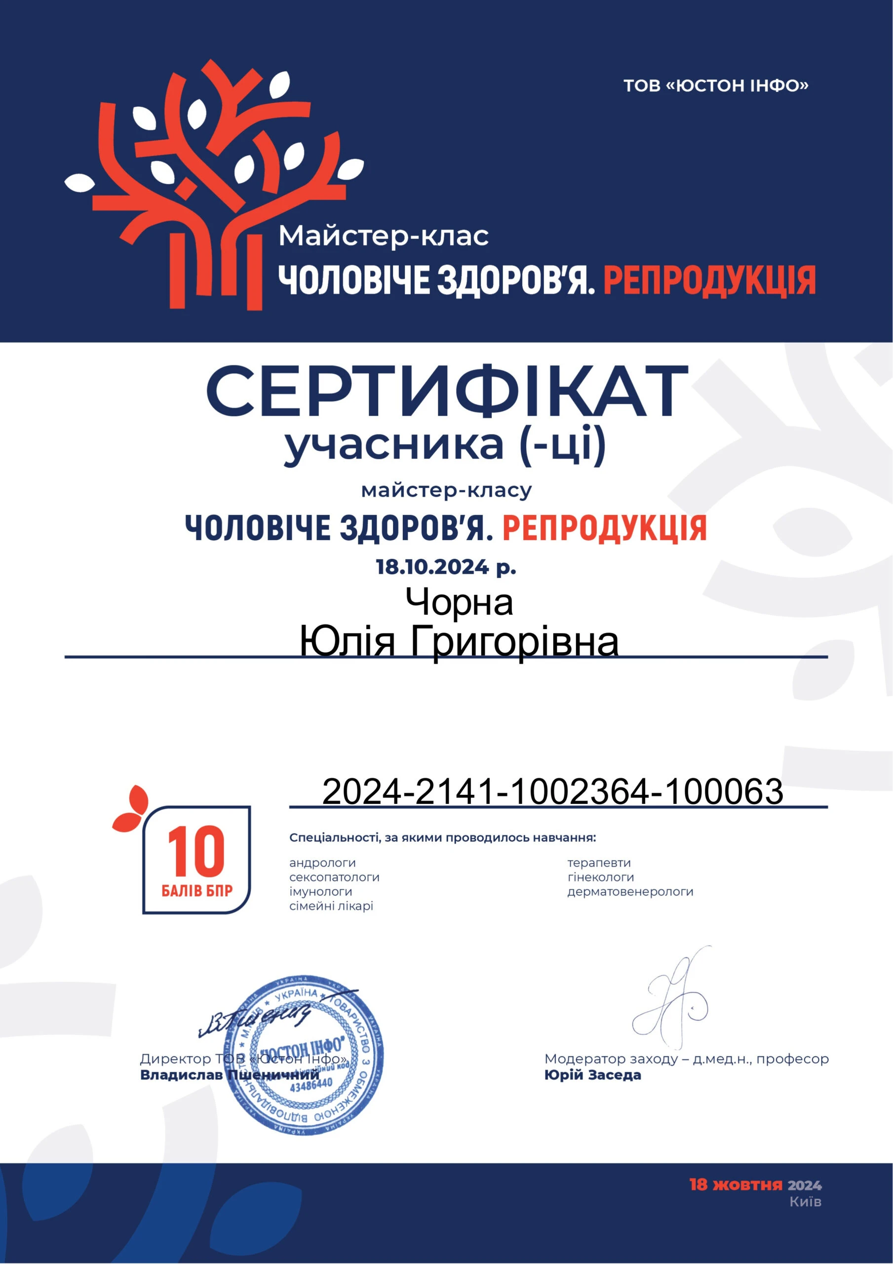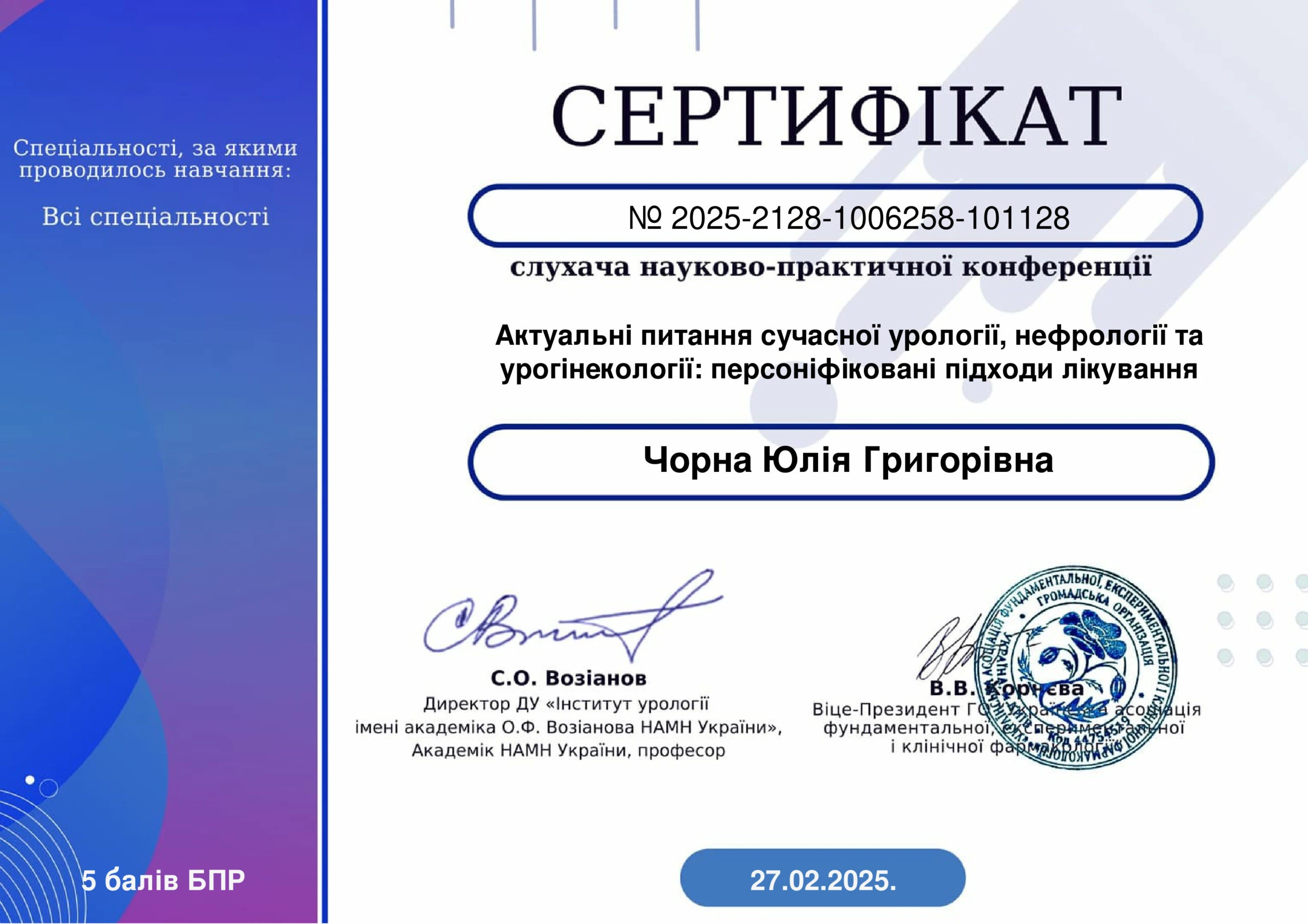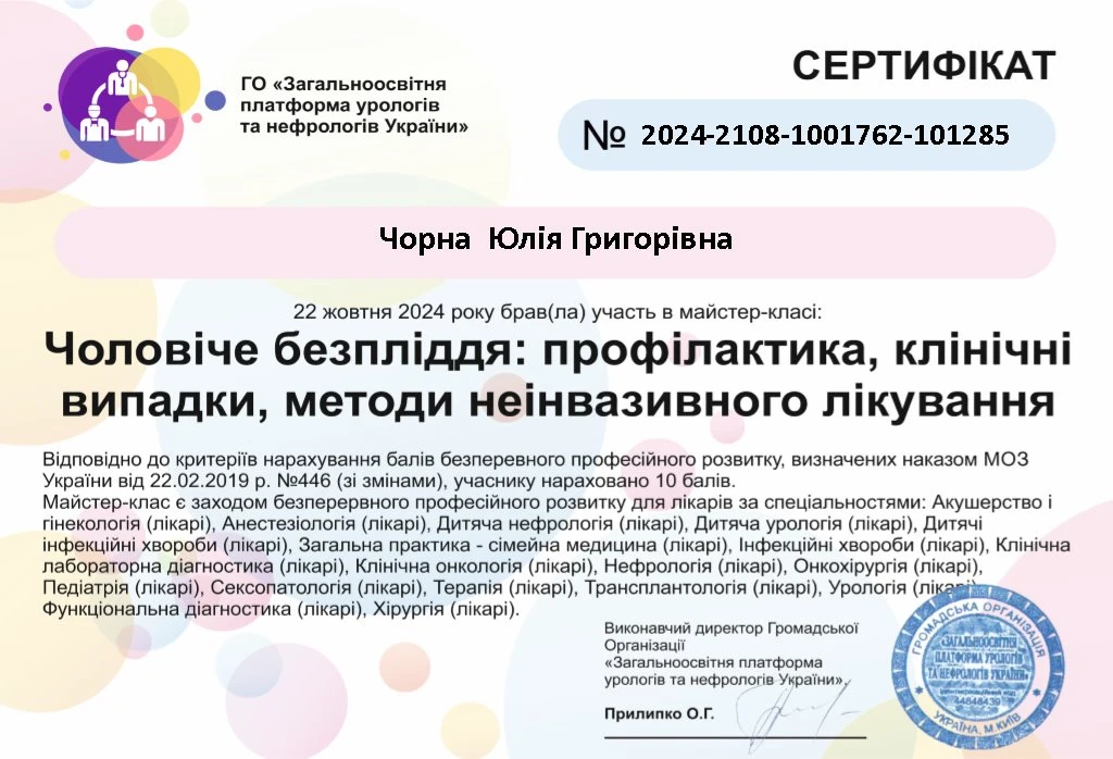 Лікар-уролог Чорна Юлія Григорівна, чудовий лікар!!! Допомогла з проблемою, дякую!!!