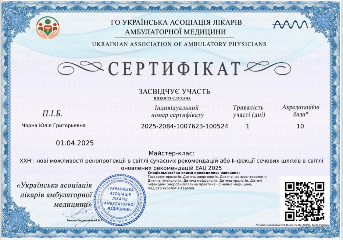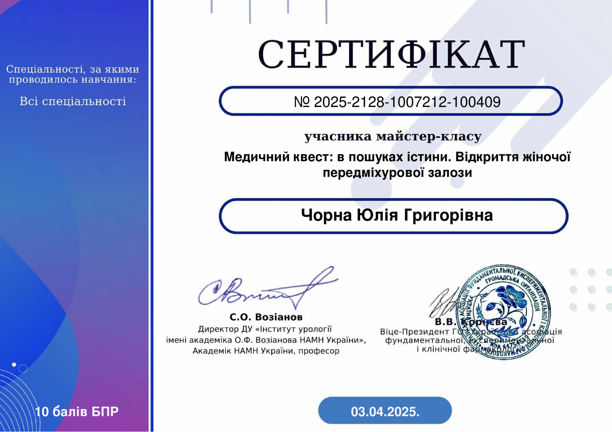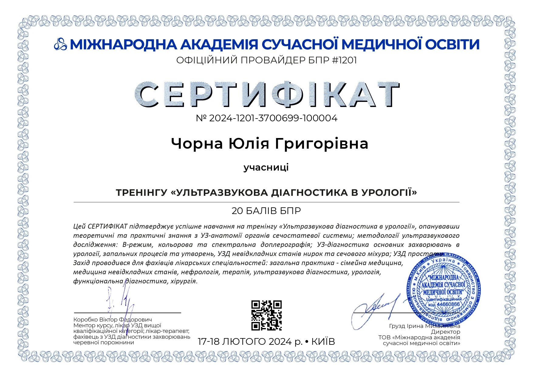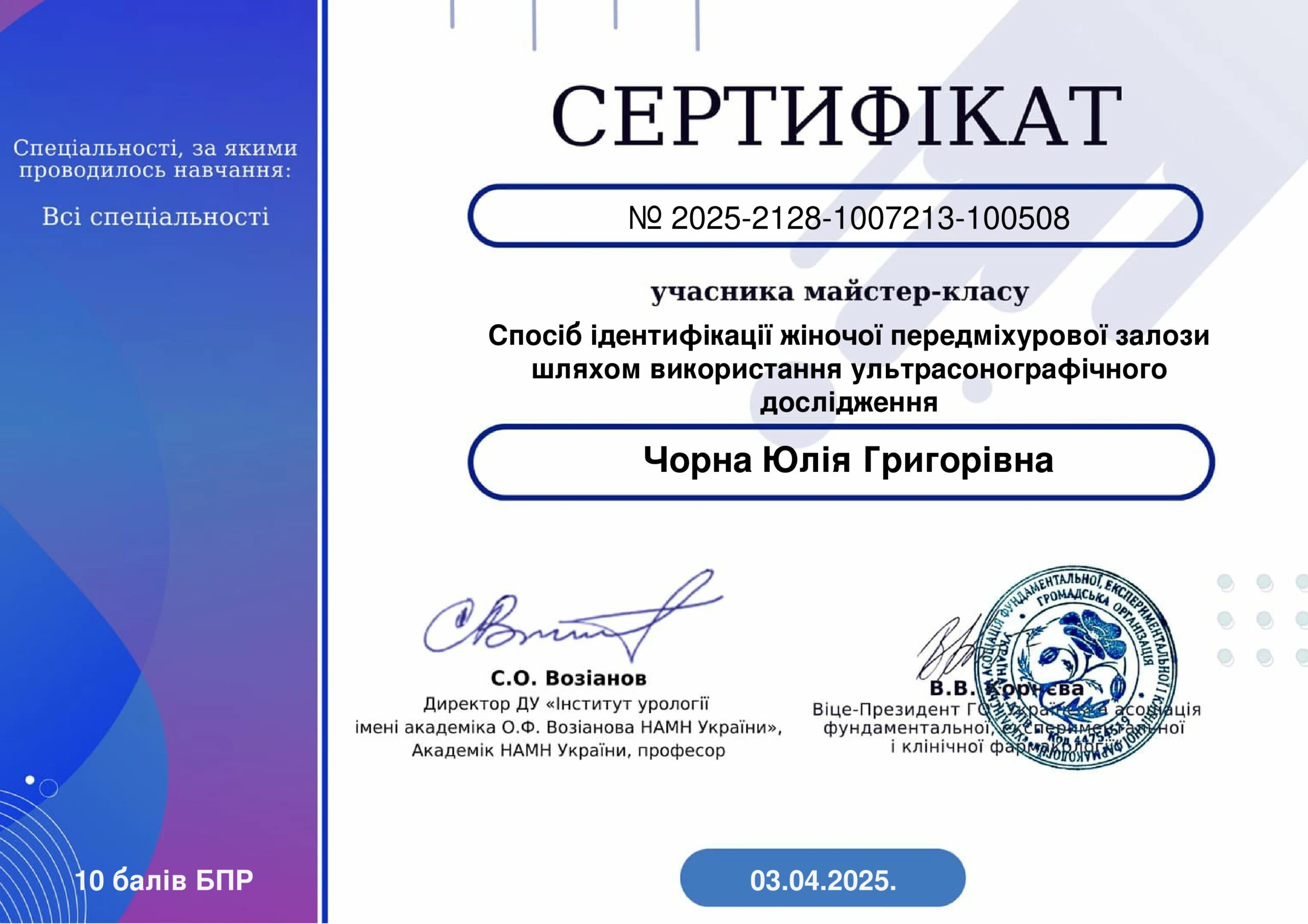 Лікар-уролог Чорна Юлія Григорівна, чудовий лікар!!! Допомогла з проблемою, дякую!!!
