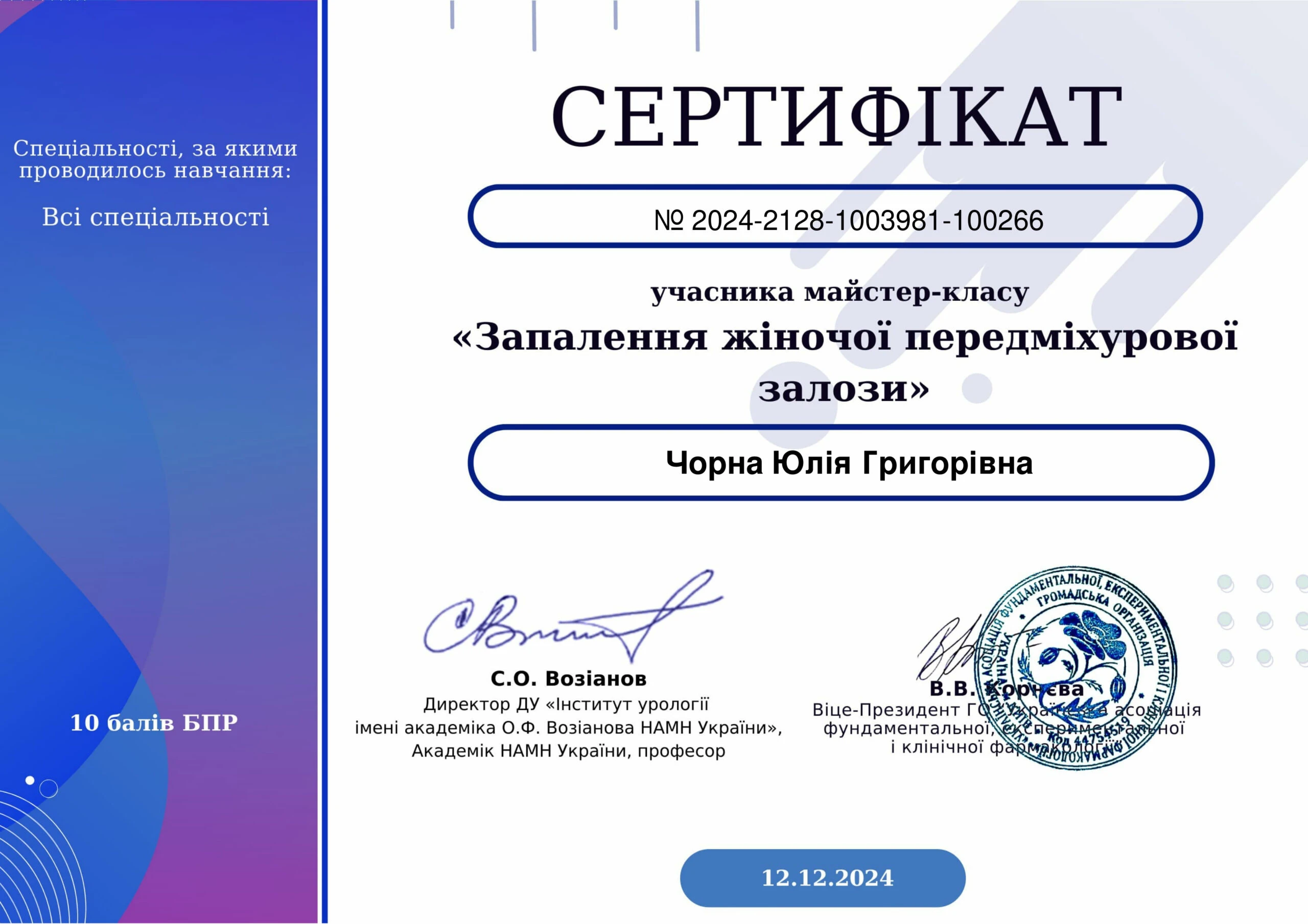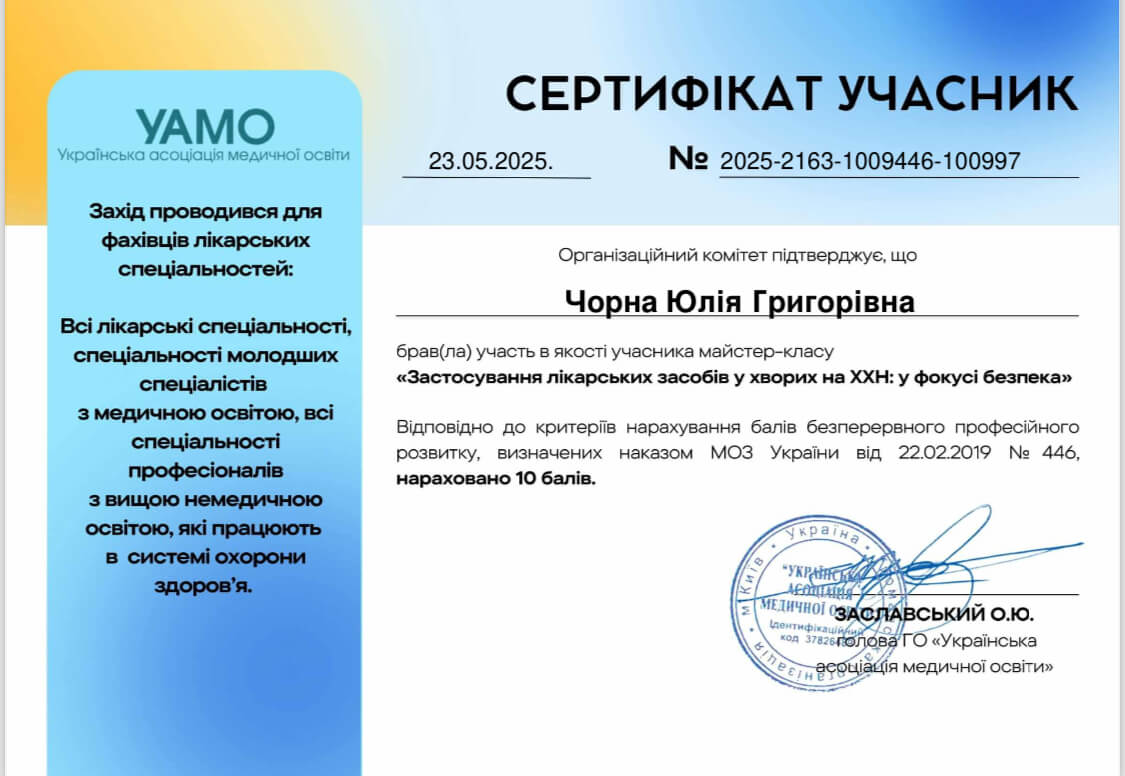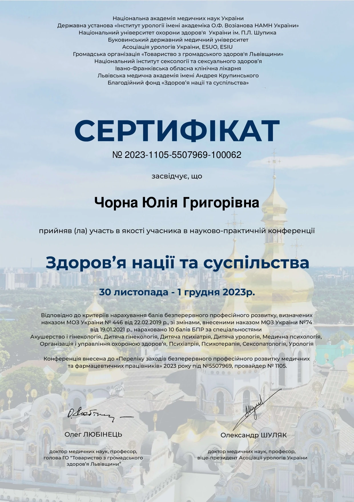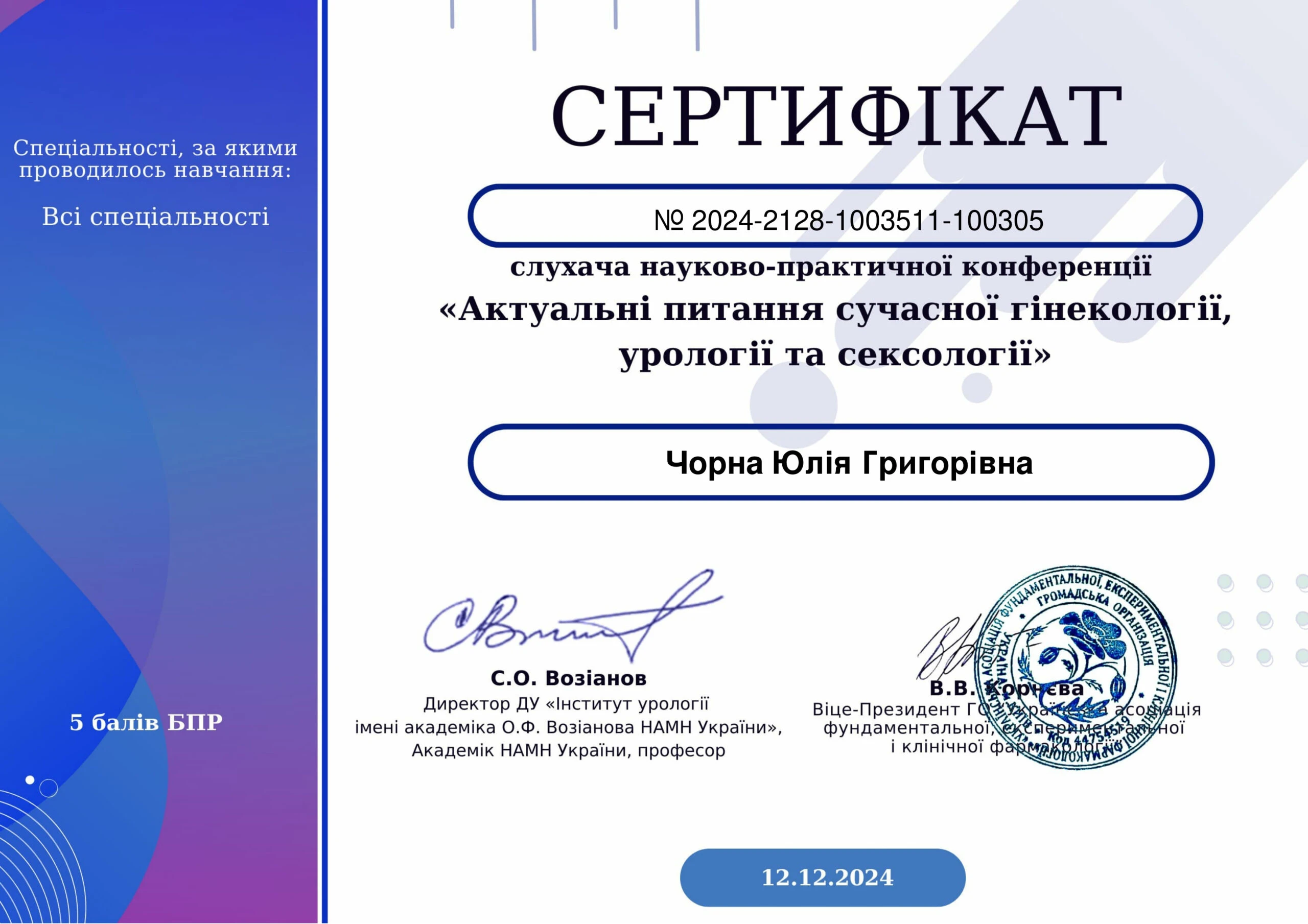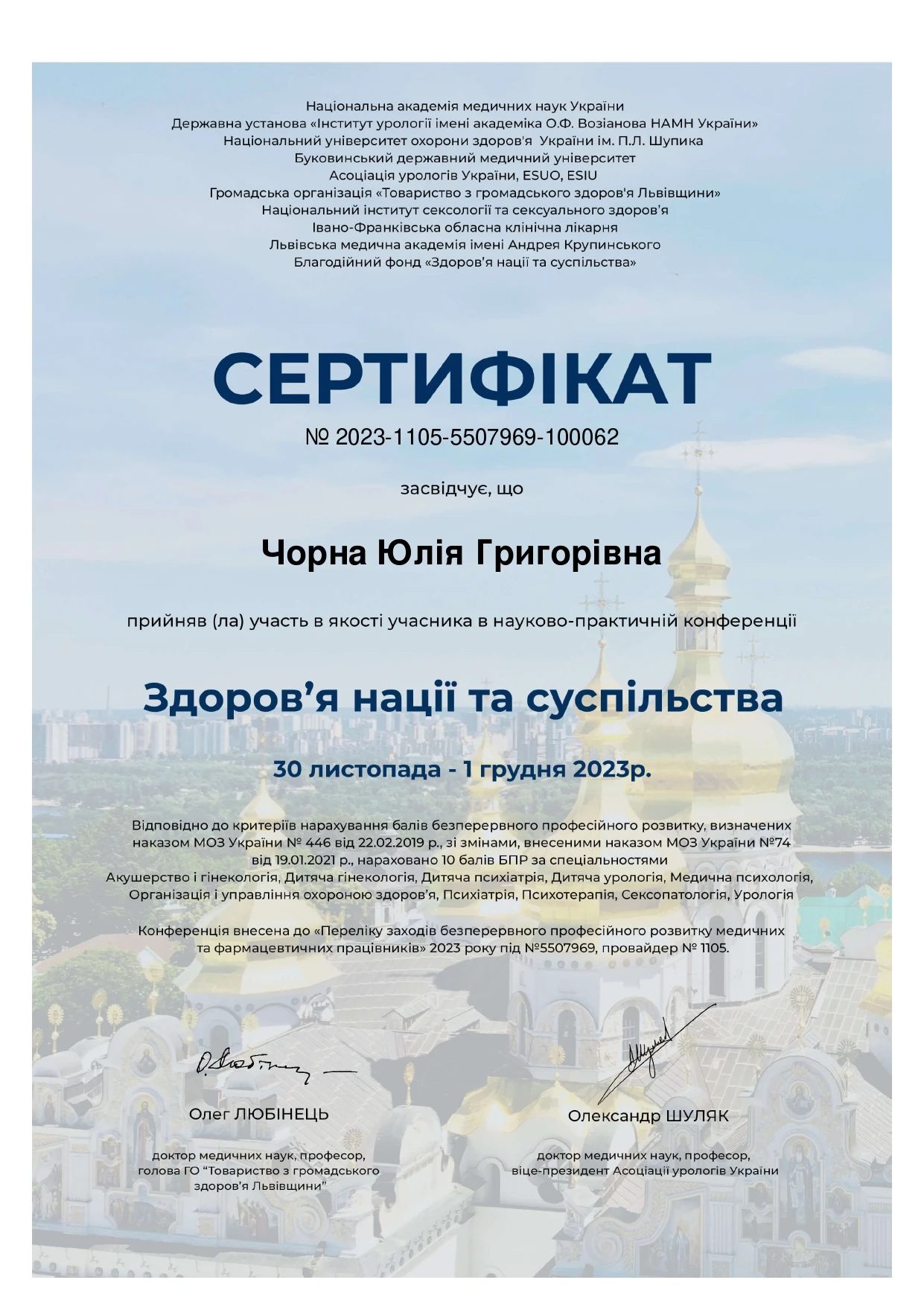 Лікар-уролог Чорна Юлія Григорівна, чудовий лікар!!! Допомогла з проблемою, дякую!!!