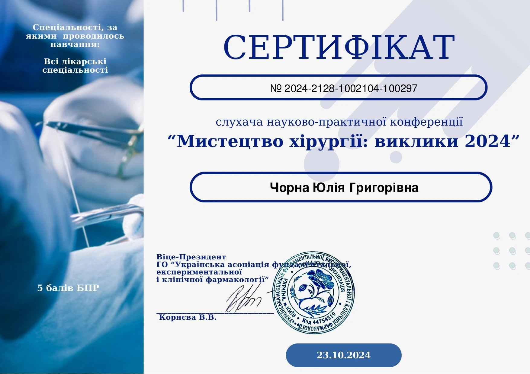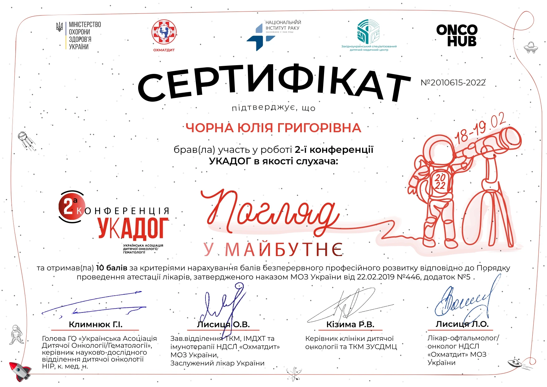 Дуже задоволена своїм візитом в лікарню до лікаря Чорної Юлії Григорівни. Компетентний лікар, з якою дуже приємно спілкуватися!