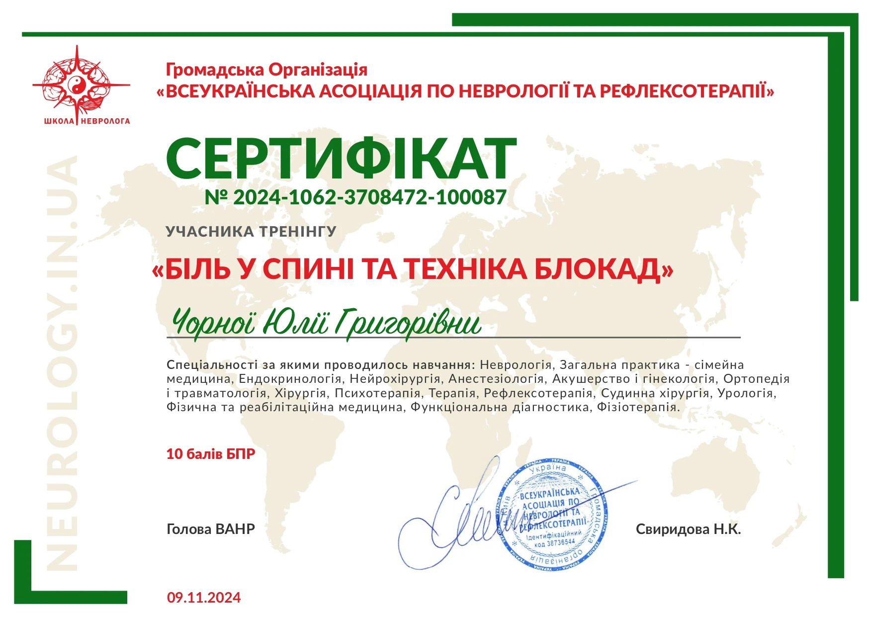 Юлія Григорівна Чорна дуже уважний і талановитий лікар. З нею дуже приємно спілкуватися. План її лікування дає реальні результати. Побільше б таких талановитих лікарів.