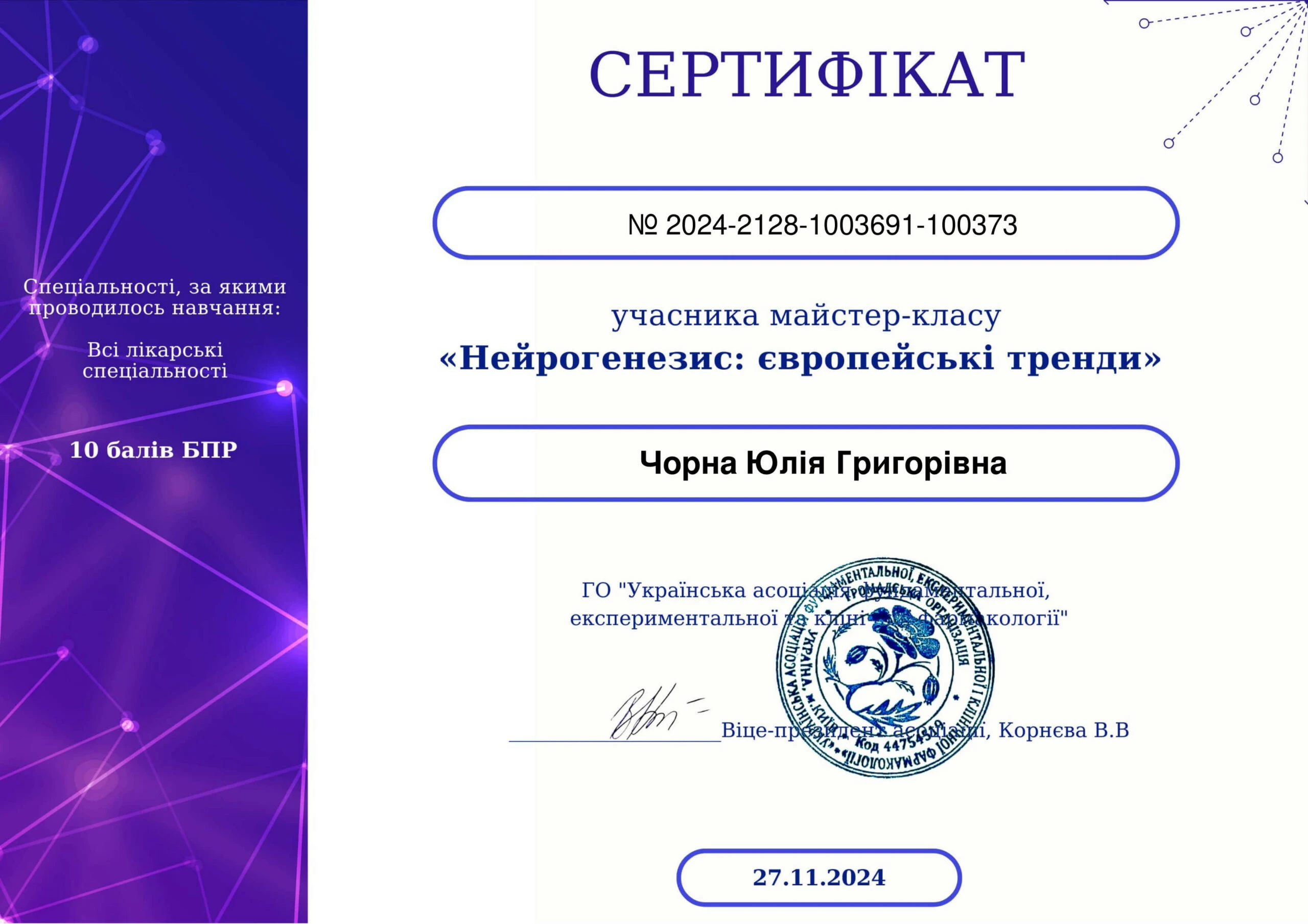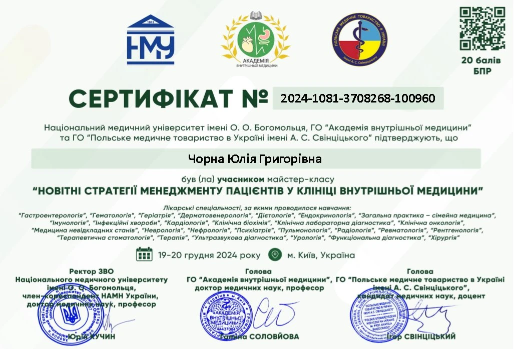 Чорна Юлія Григорівна швидко і професійно провела обстеження. Дуже уважна до пацієнта і деталей. Я задоволена, що потрапила саме до цього спеціаліста.