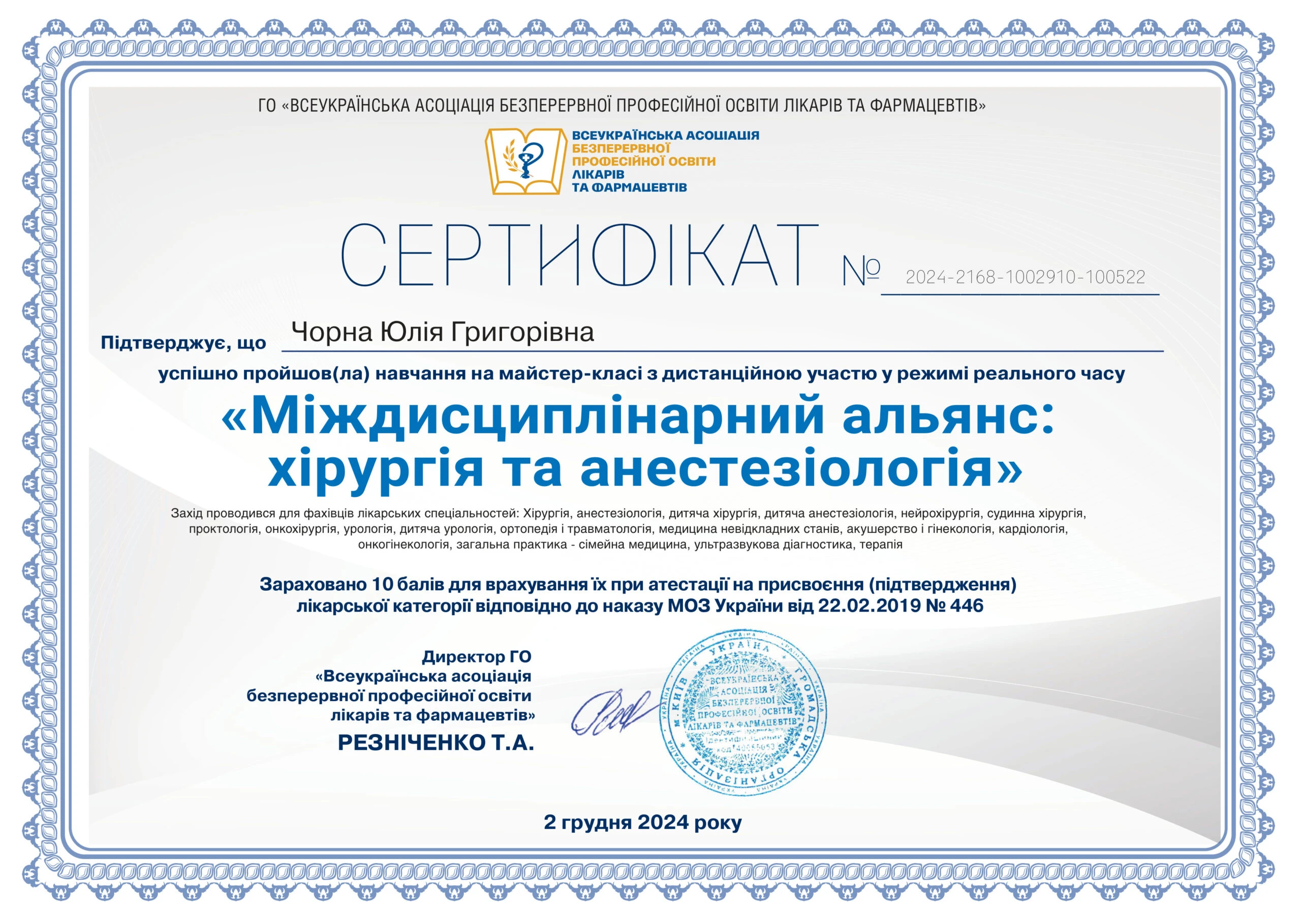 Дуже задоволений візитом до клініки! Чорна Юлія Григорівна — справжній професіонал, поставила діагноз і призначила лікування! Дуже дякую їй за допомогу!