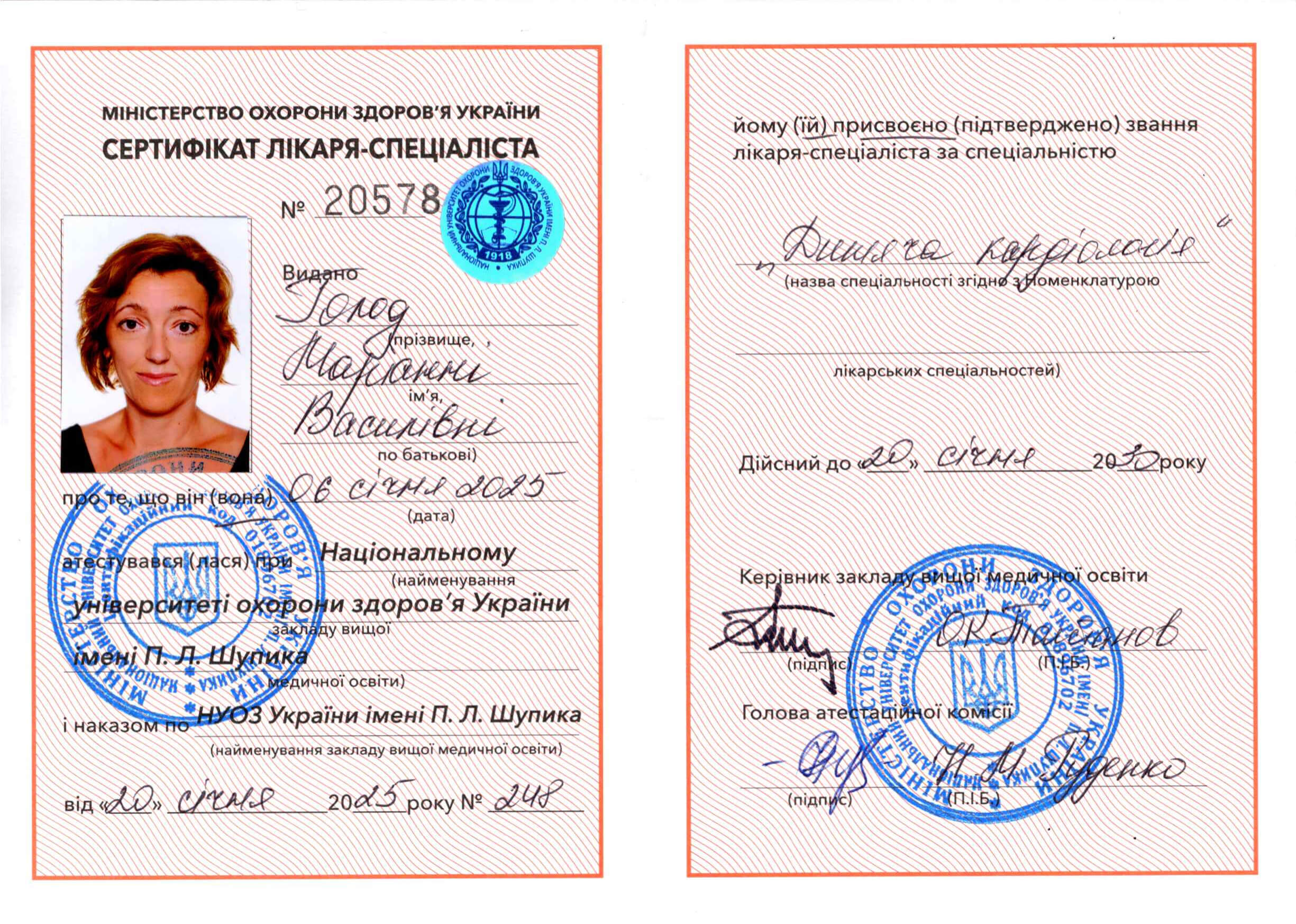 Кардіолог, терапевт, лікар УЗД