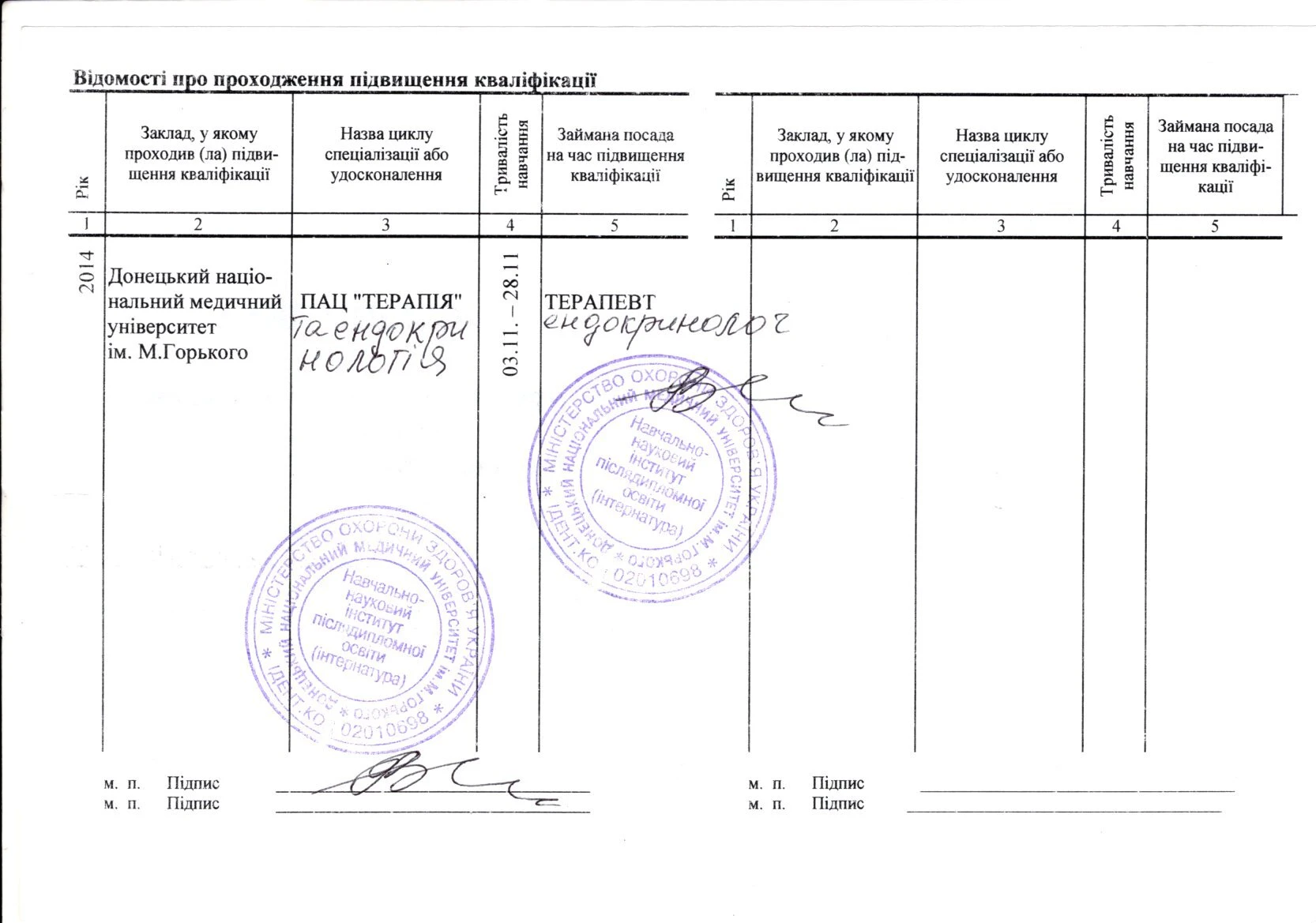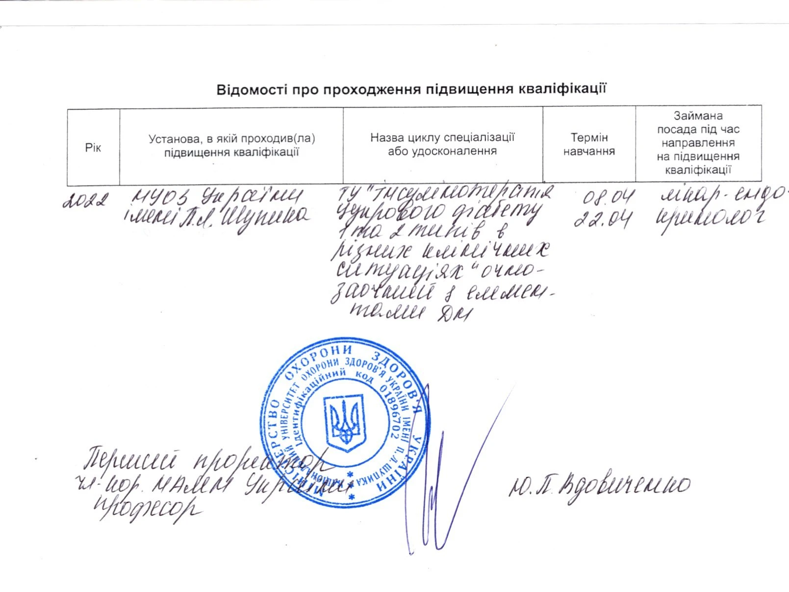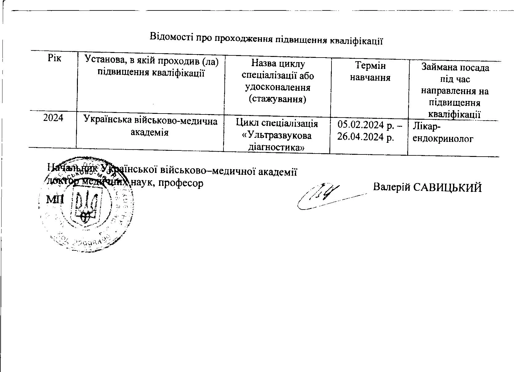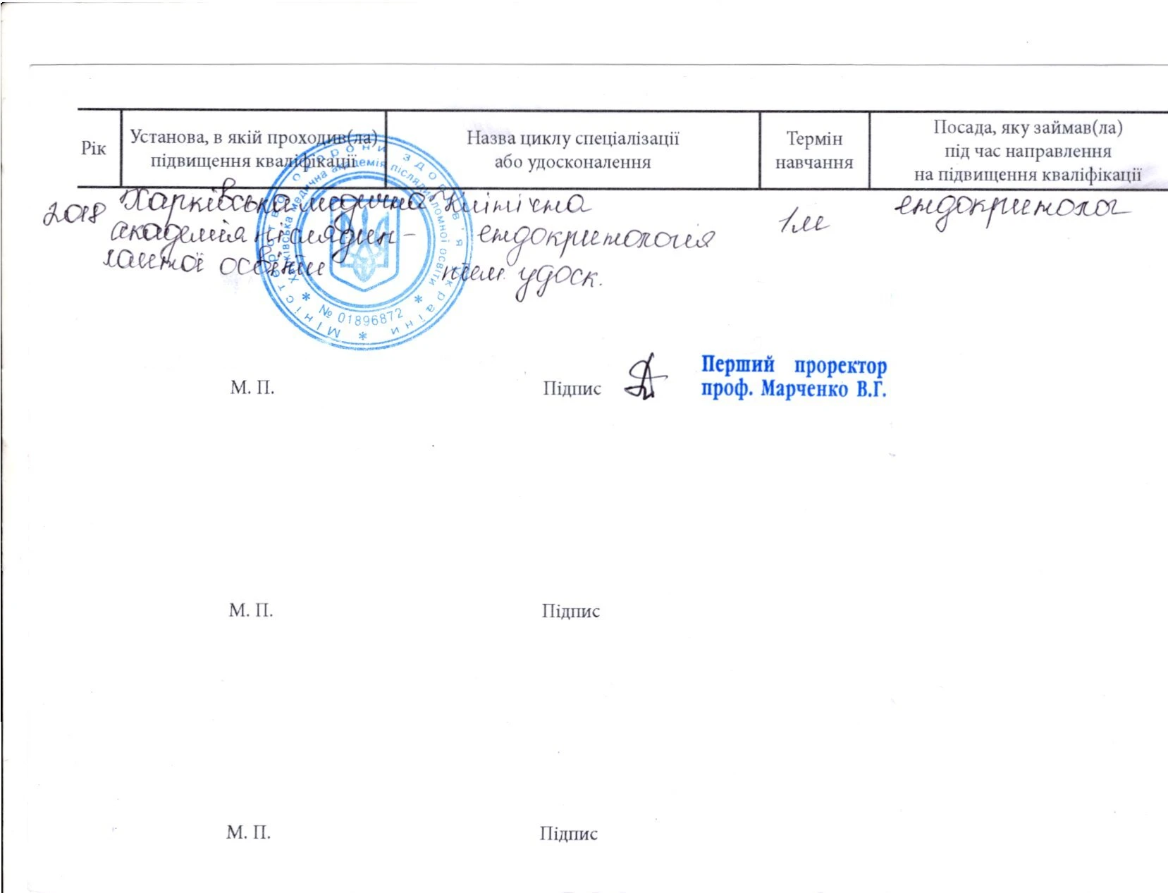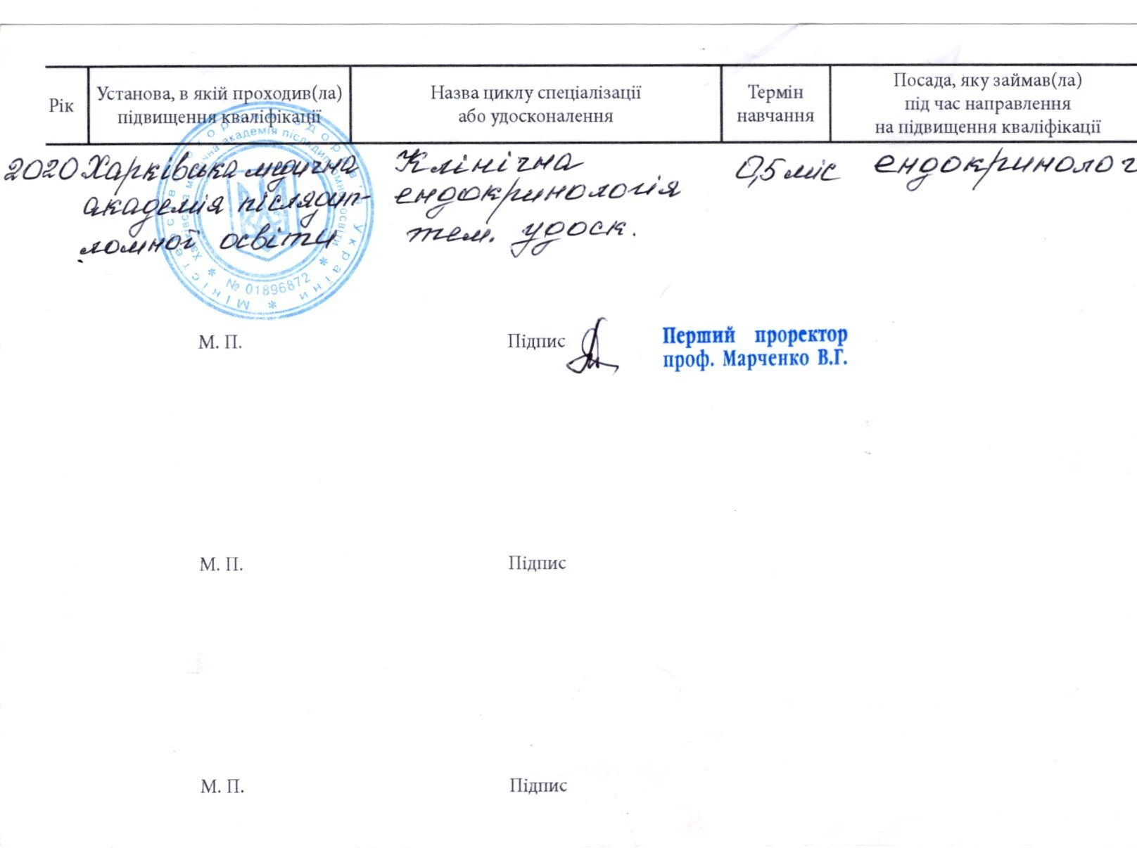 - Національний університет охорони здоров'я України імені П. Л. Шупика, «Ендокринологія», 1993