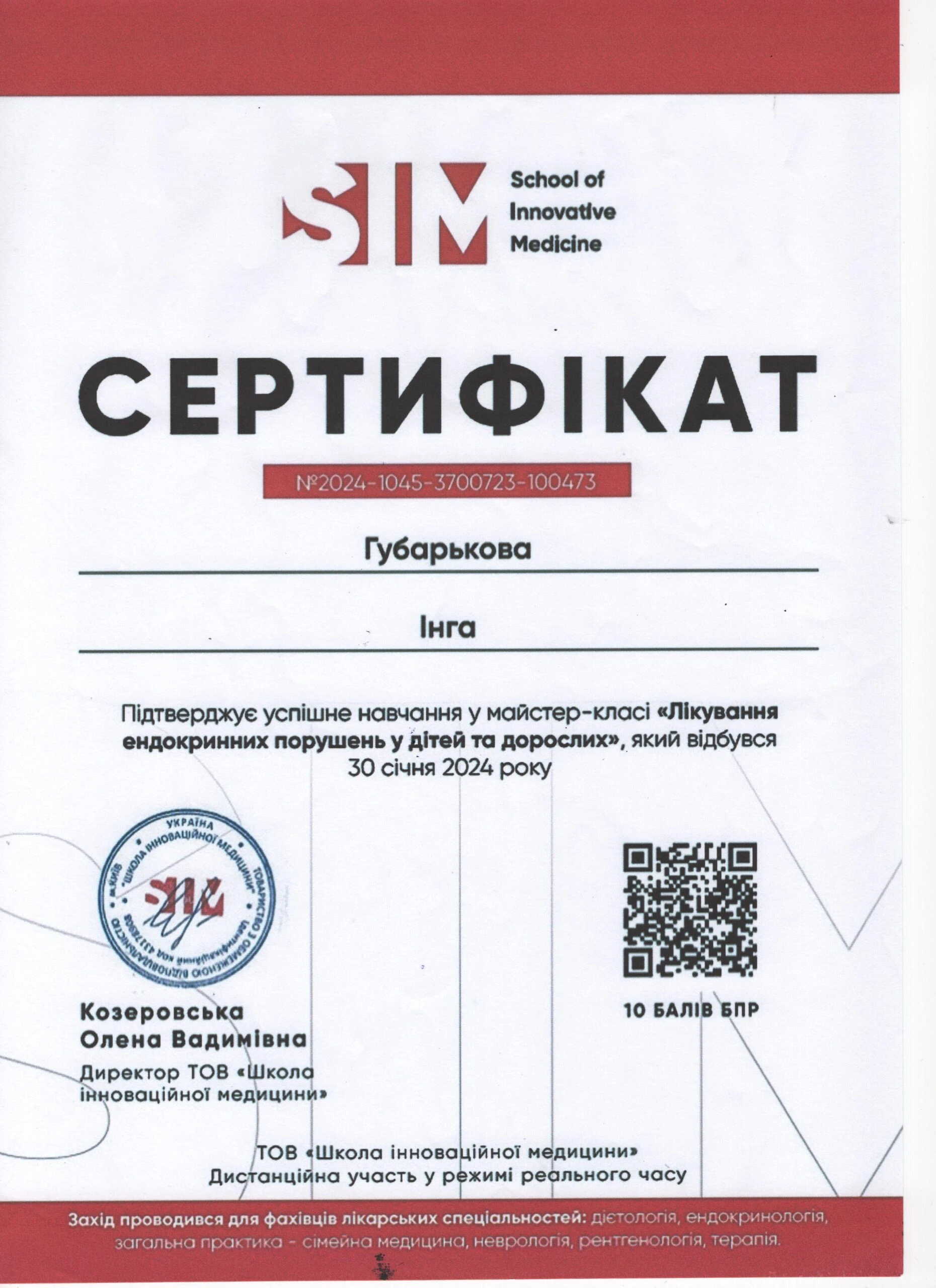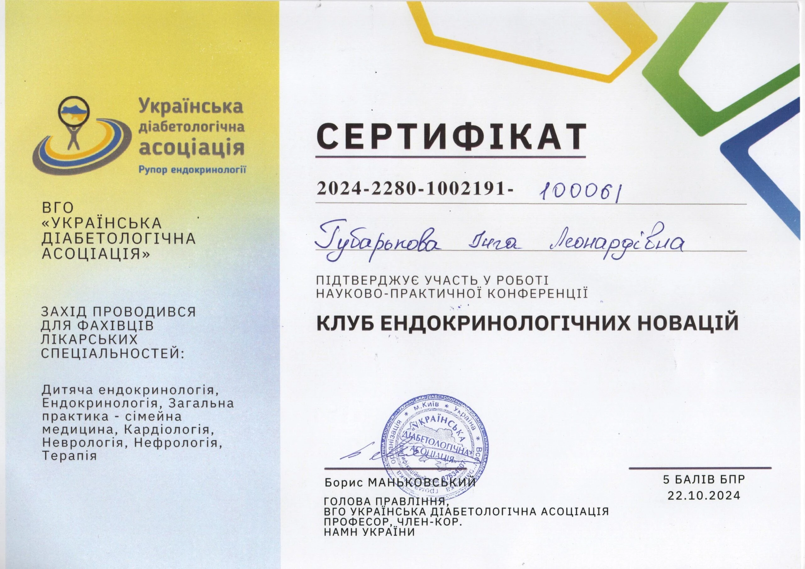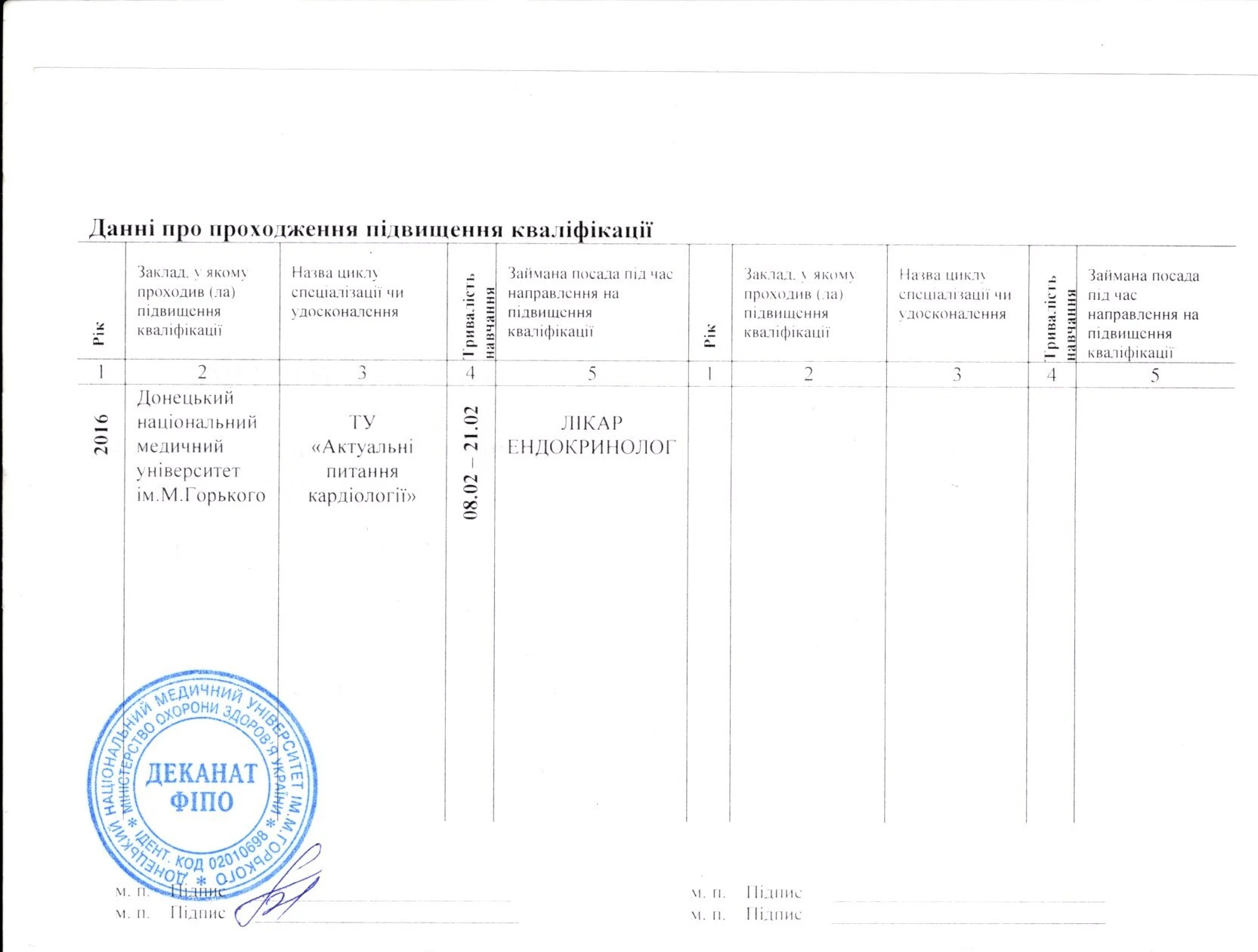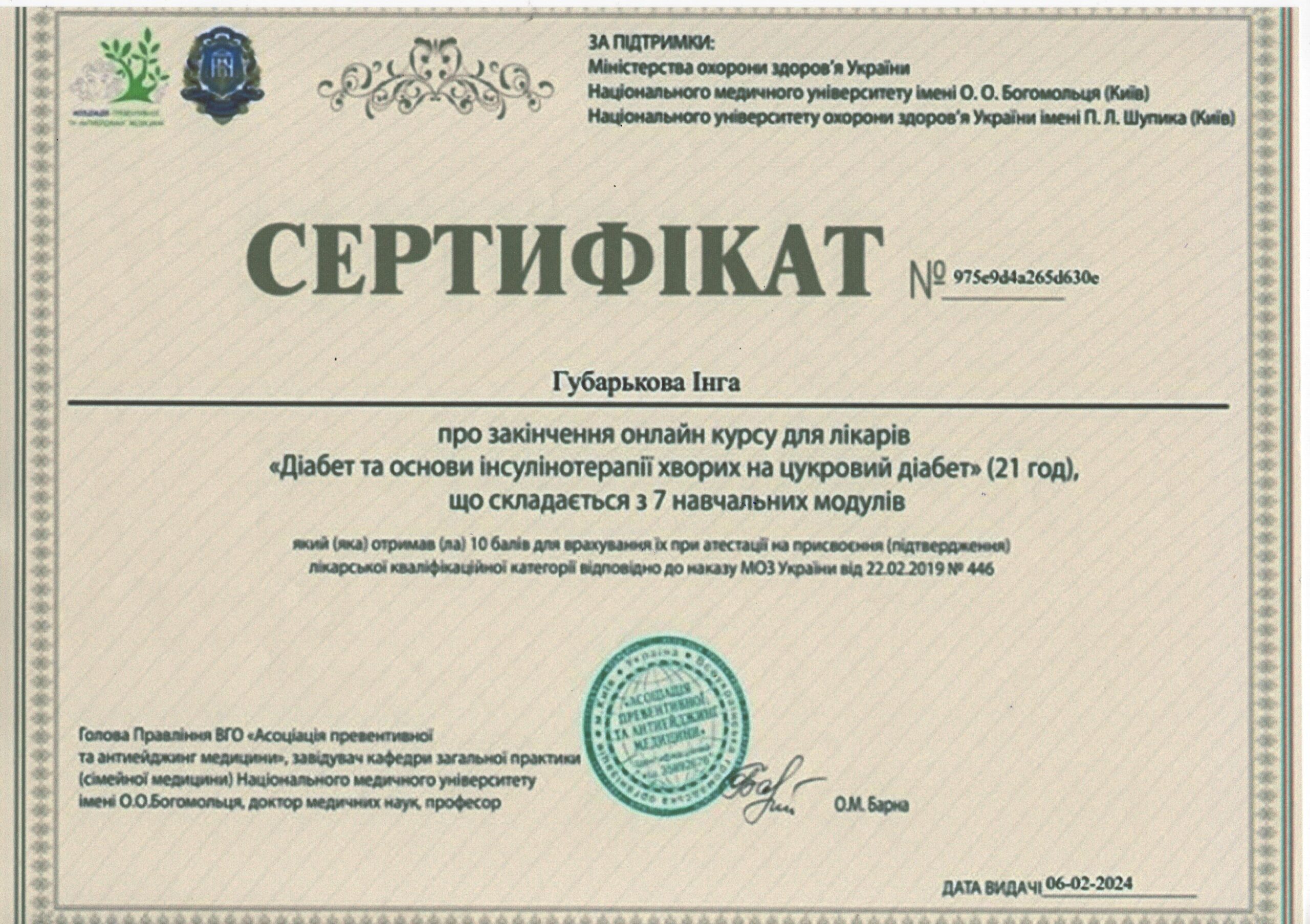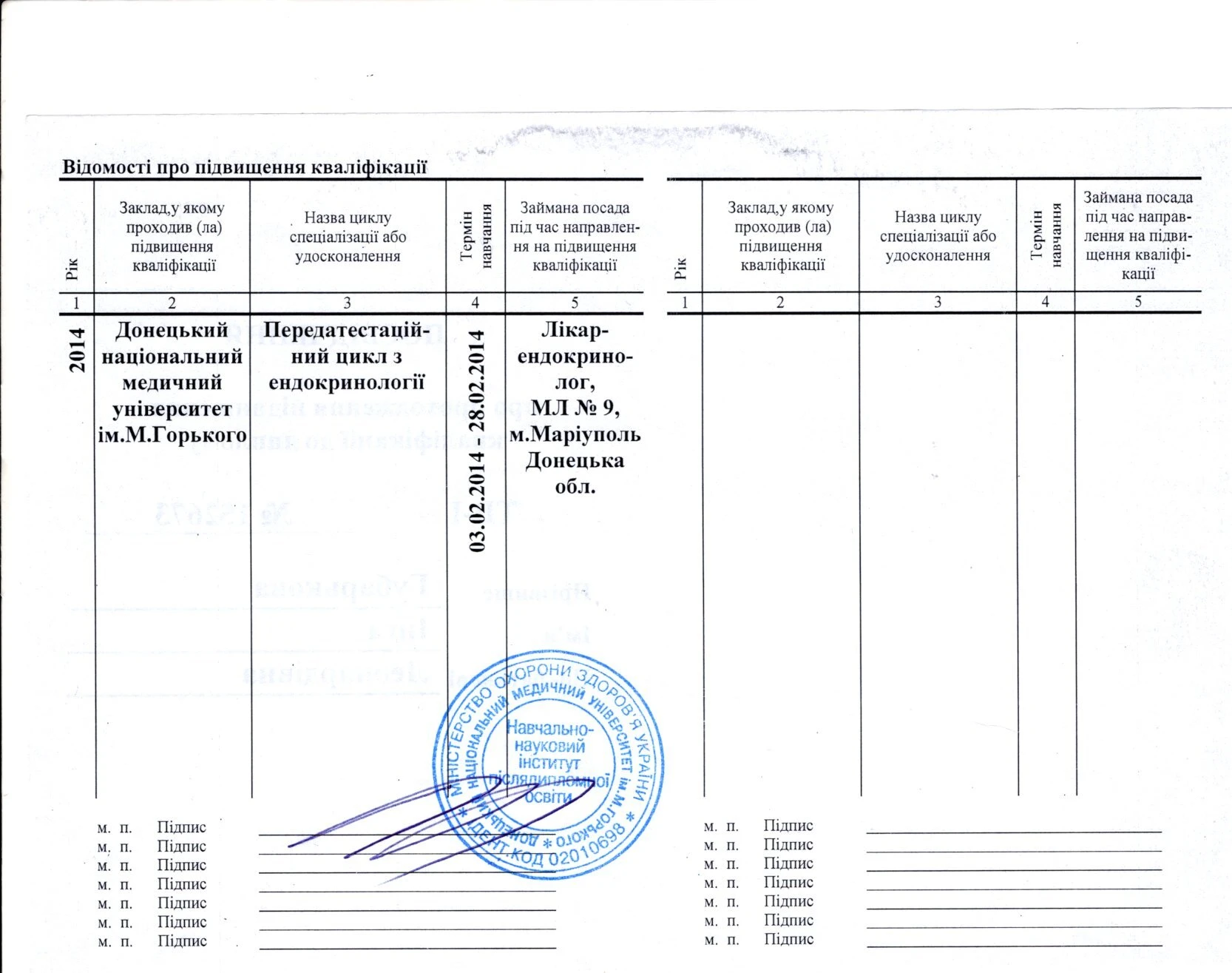 - Національний університет охорони здоров'я України імені П. Л. Шупика, «Ендокринологія», 1993