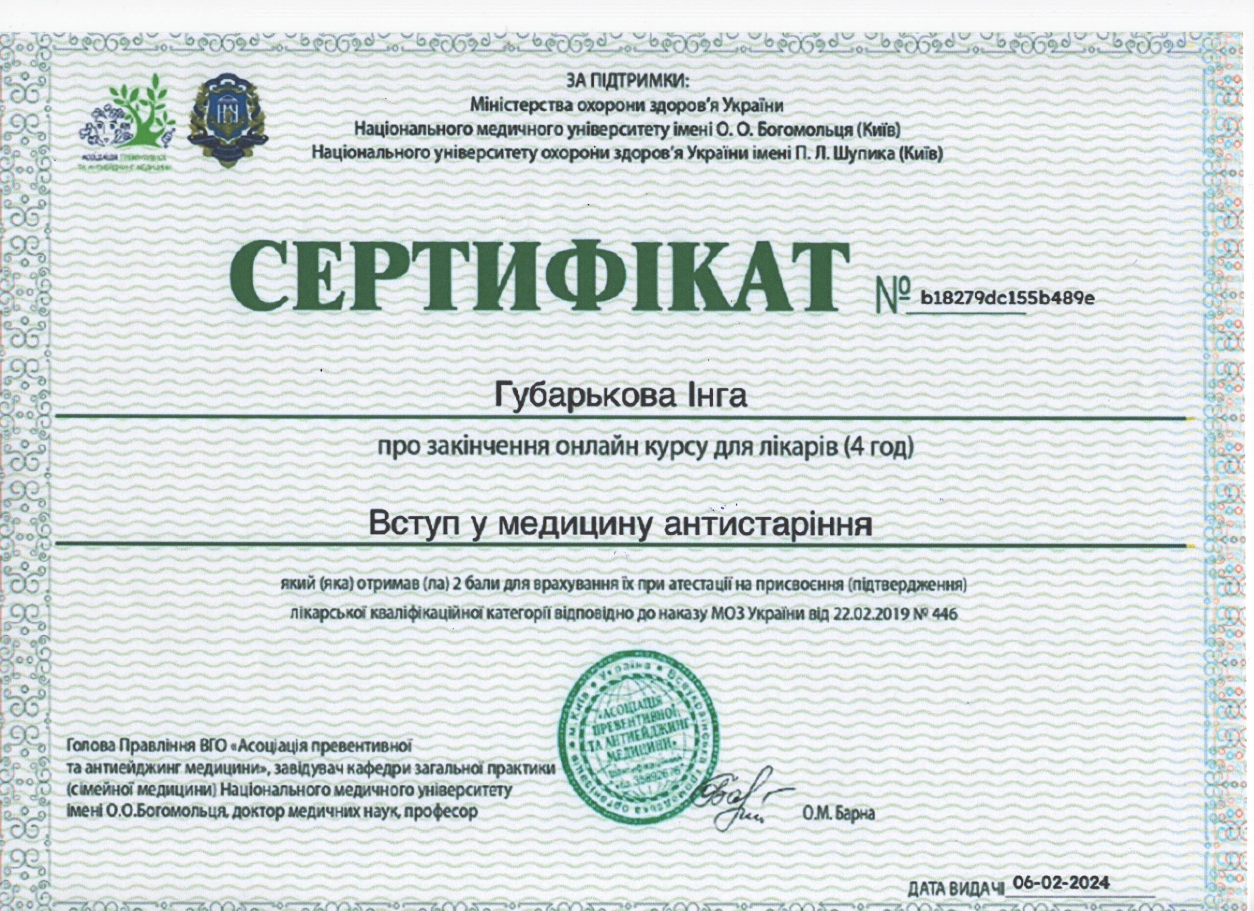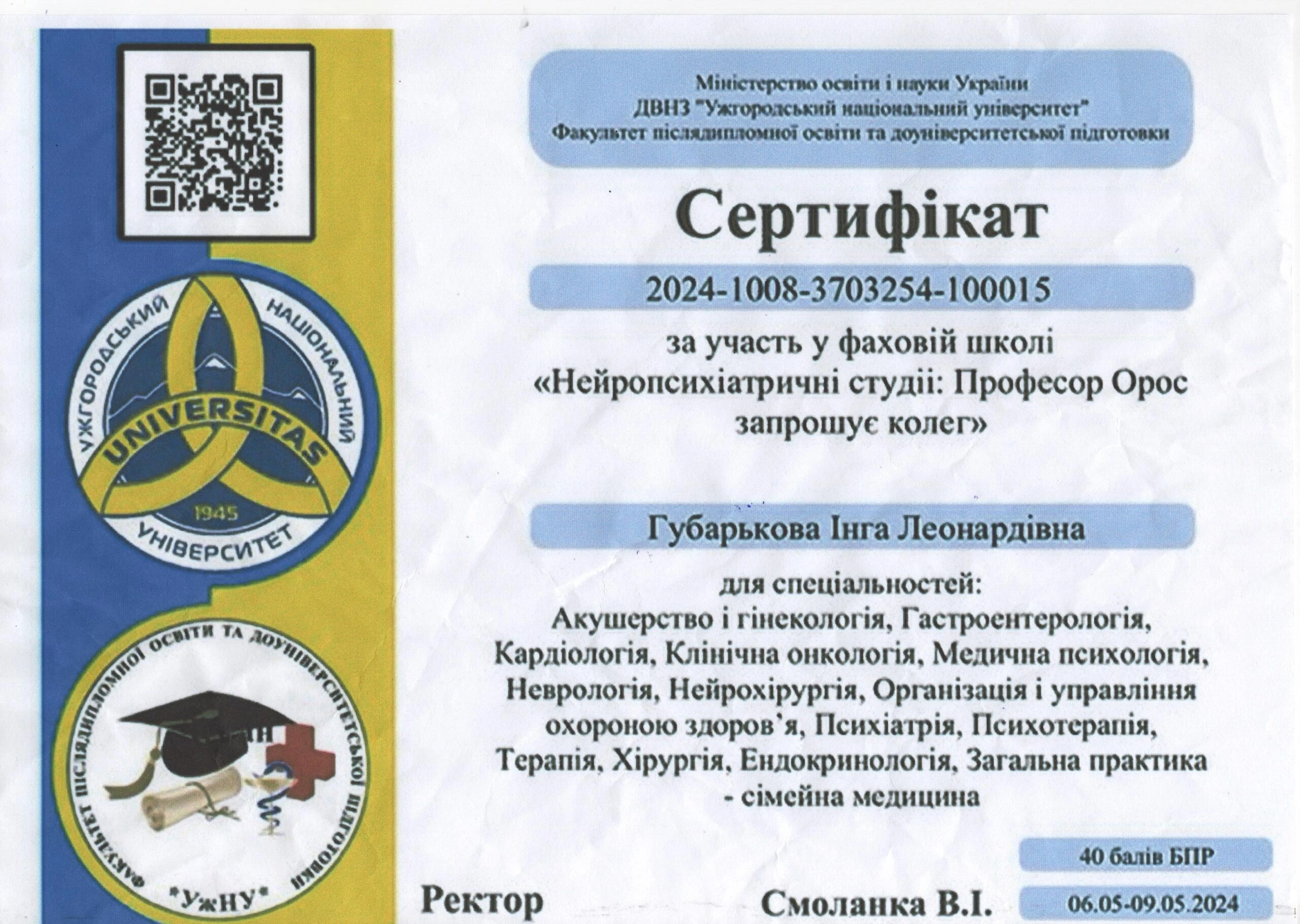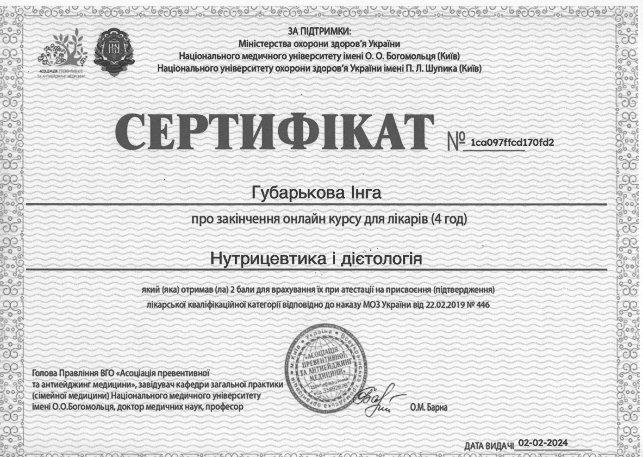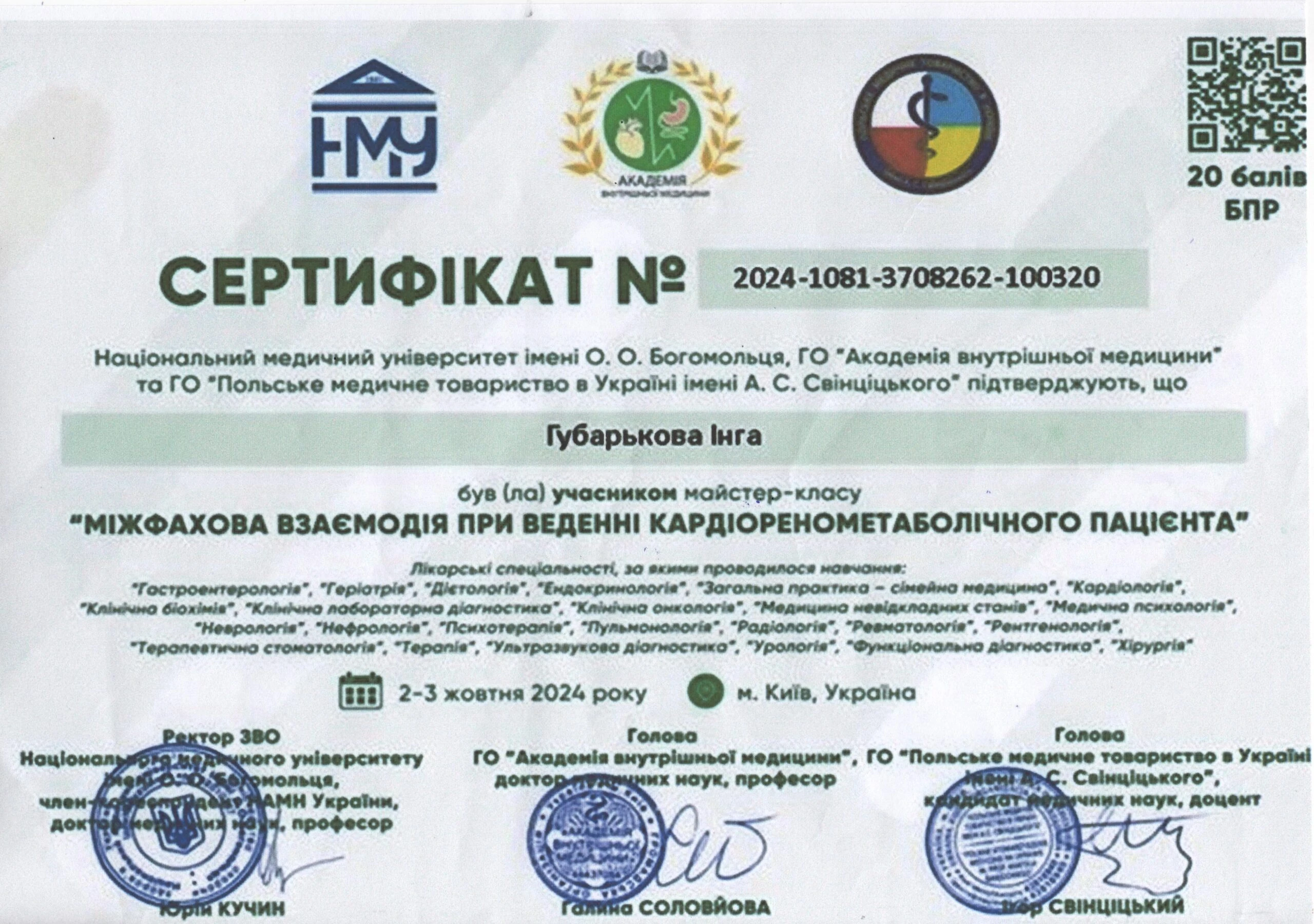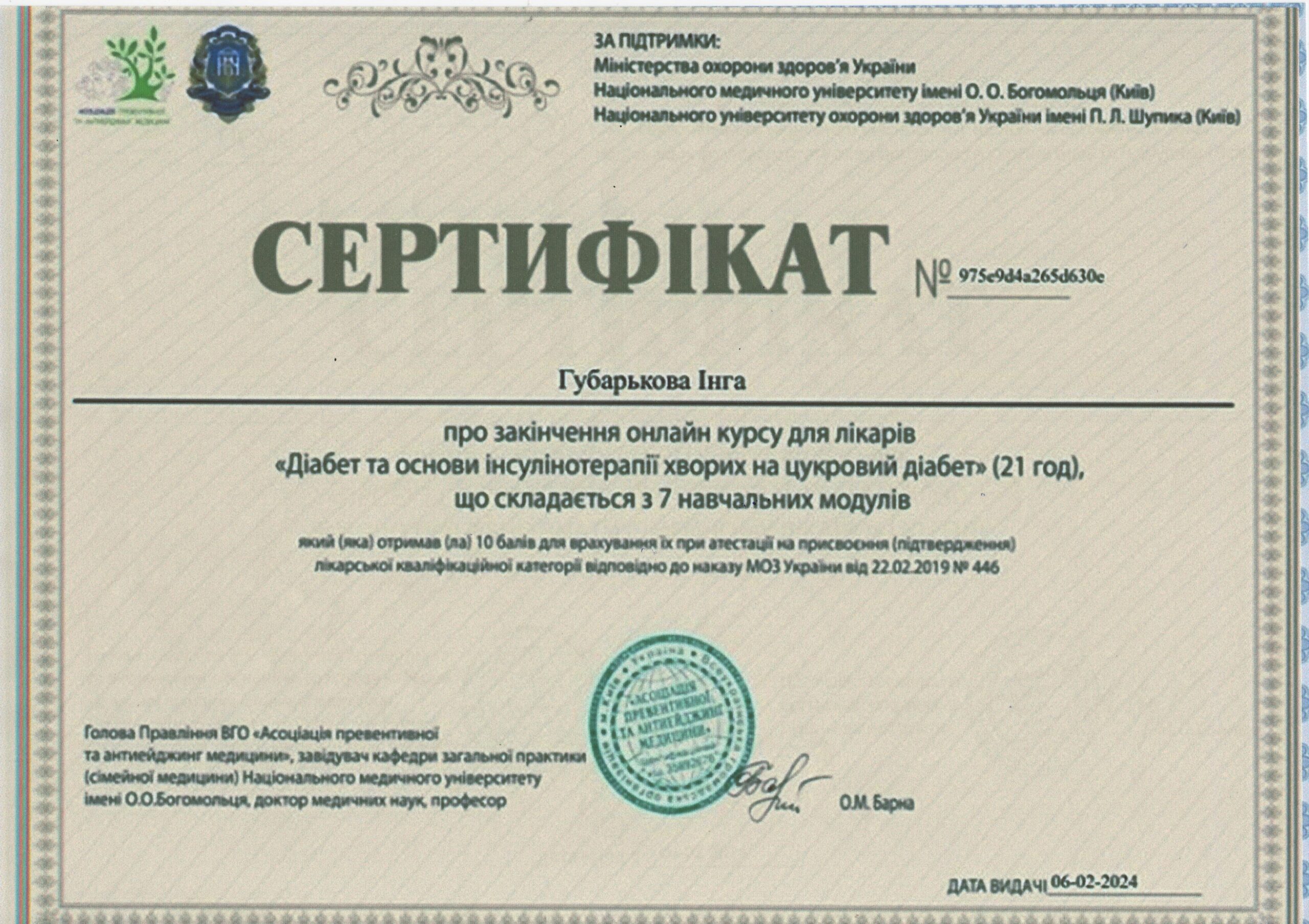 - Національний університет охорони здоров'я України імені П. Л. Шупика, «Ендокринологія», 1993