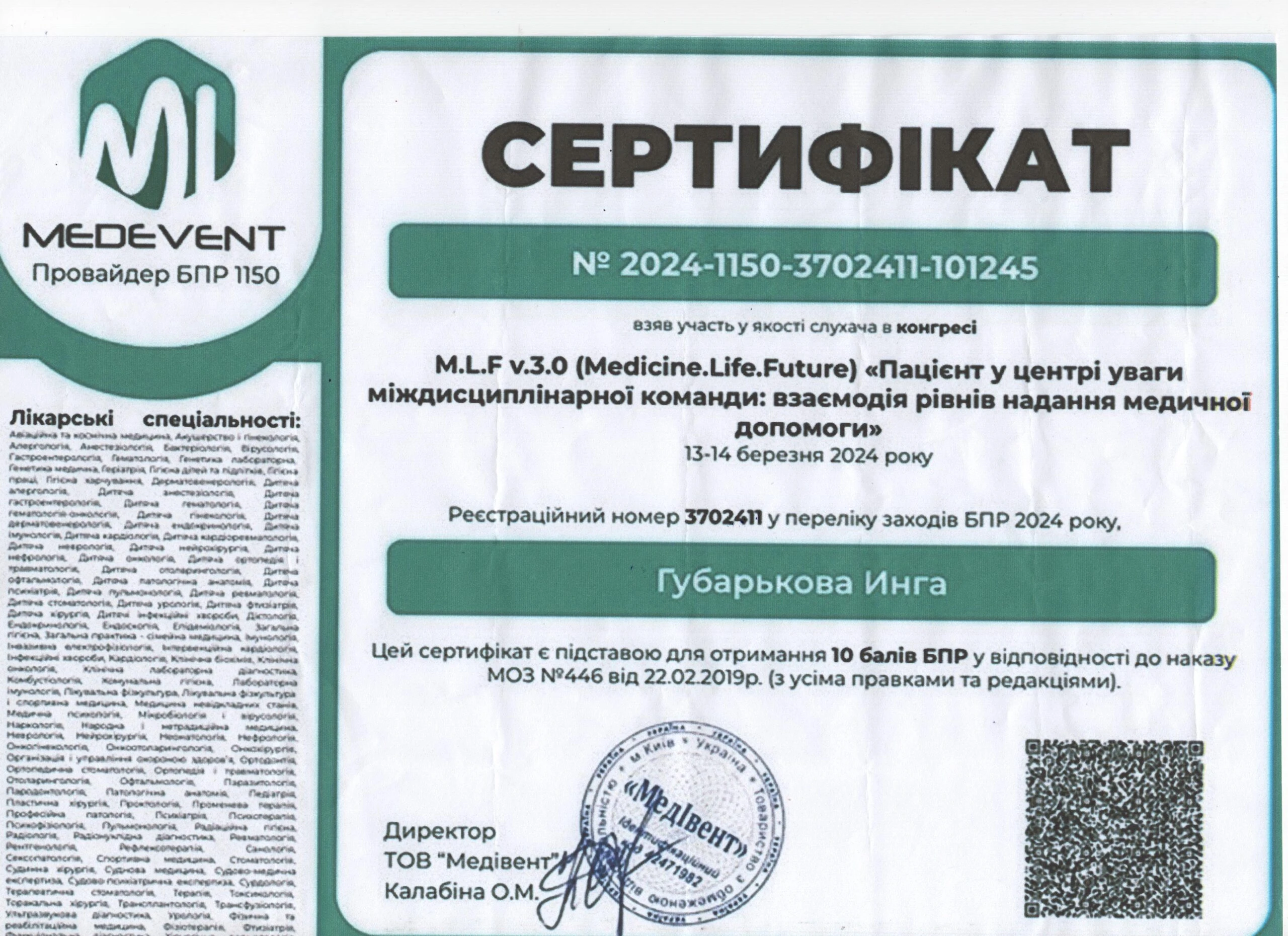 - Київська військова медична академія, «Ультразвукова діагностика», 2024