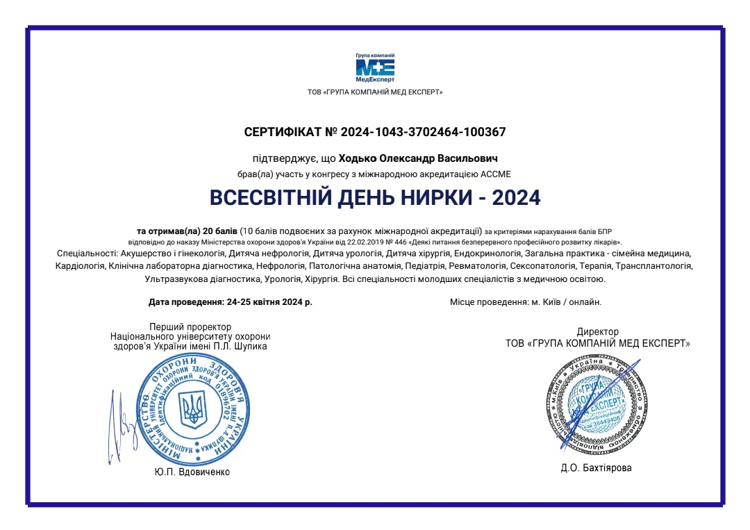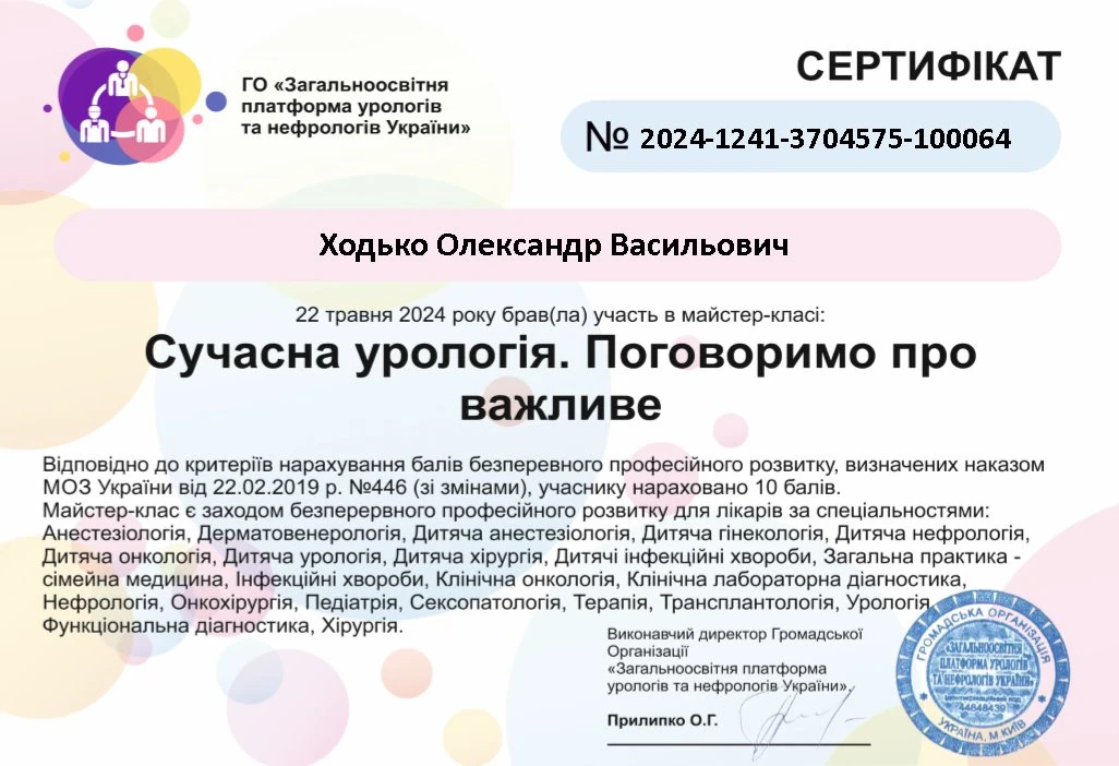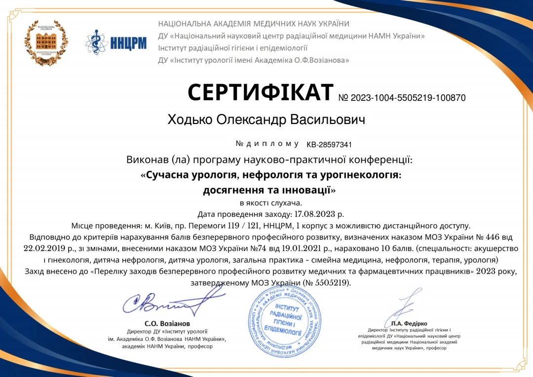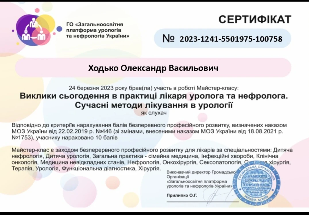 Лікар-уролог першої категорії, лікар ультразвукової діагностики