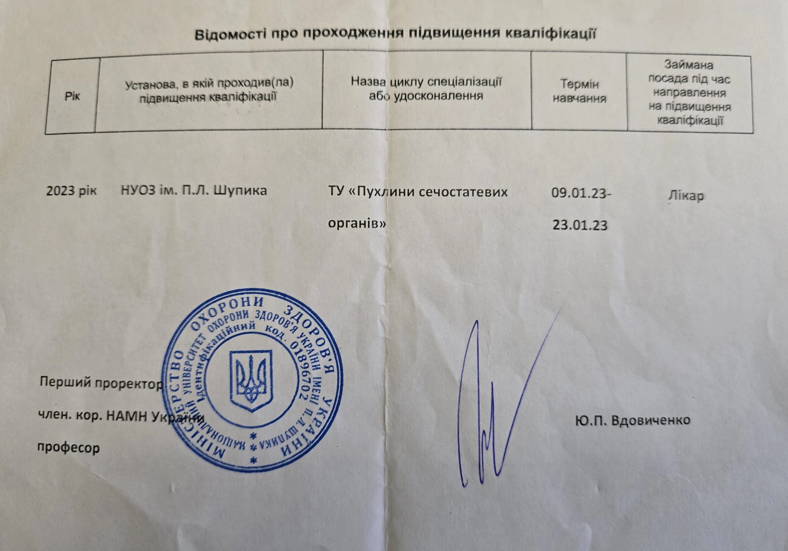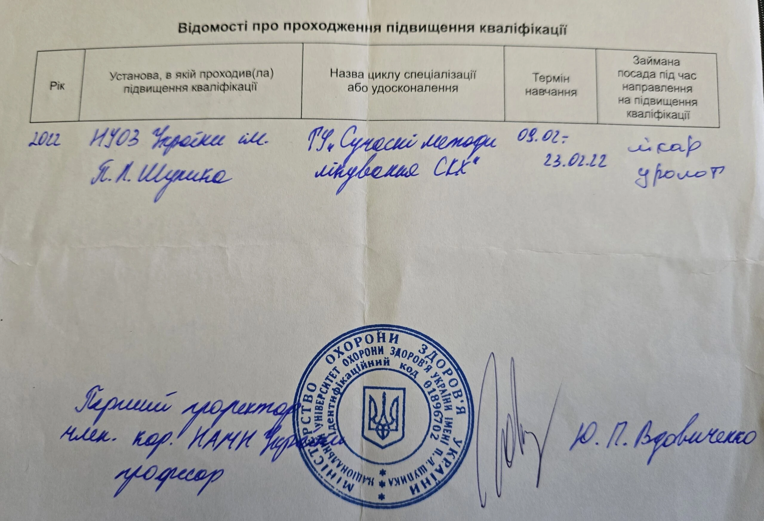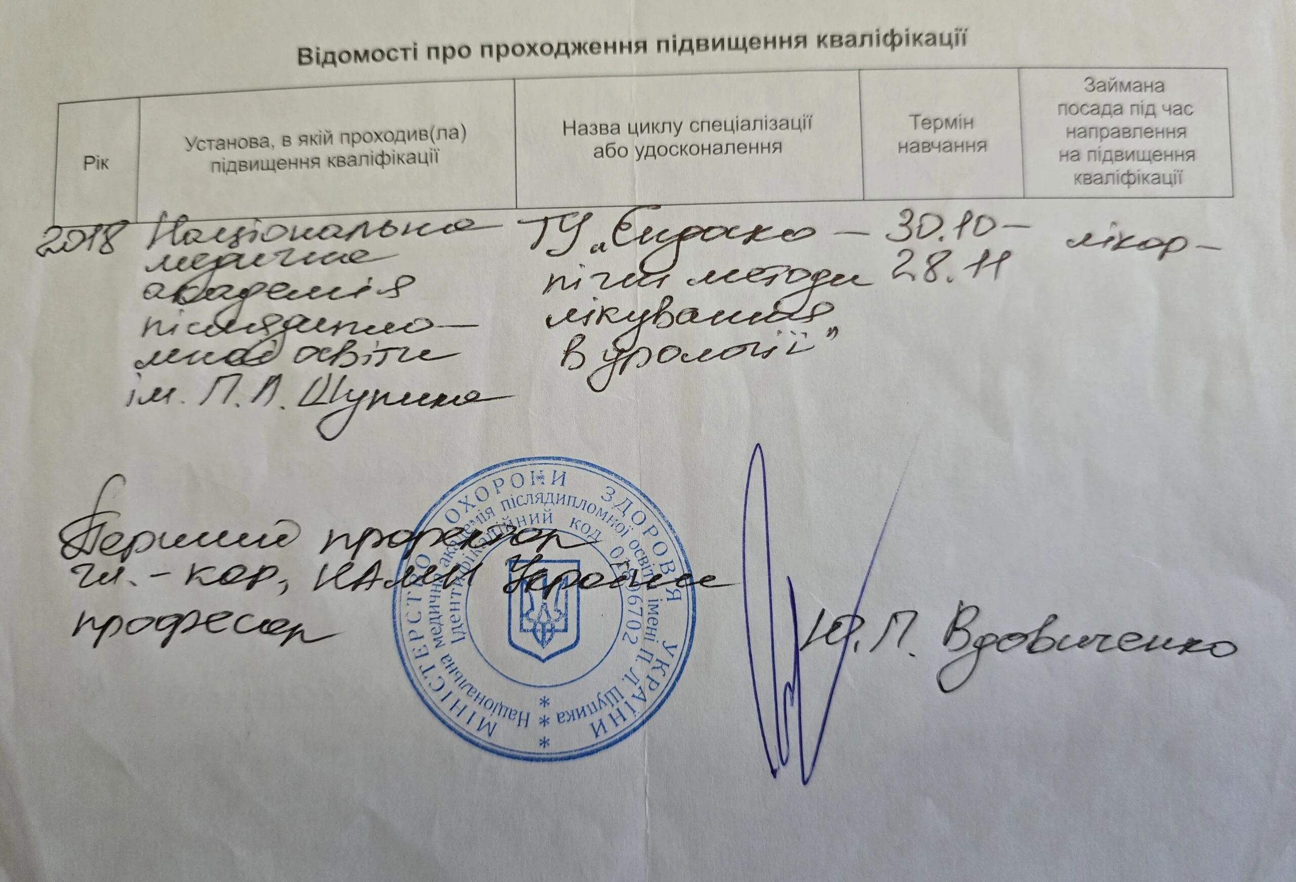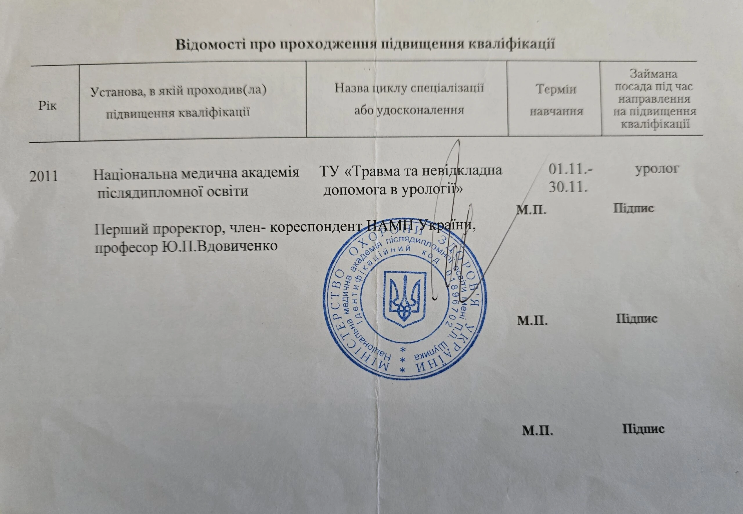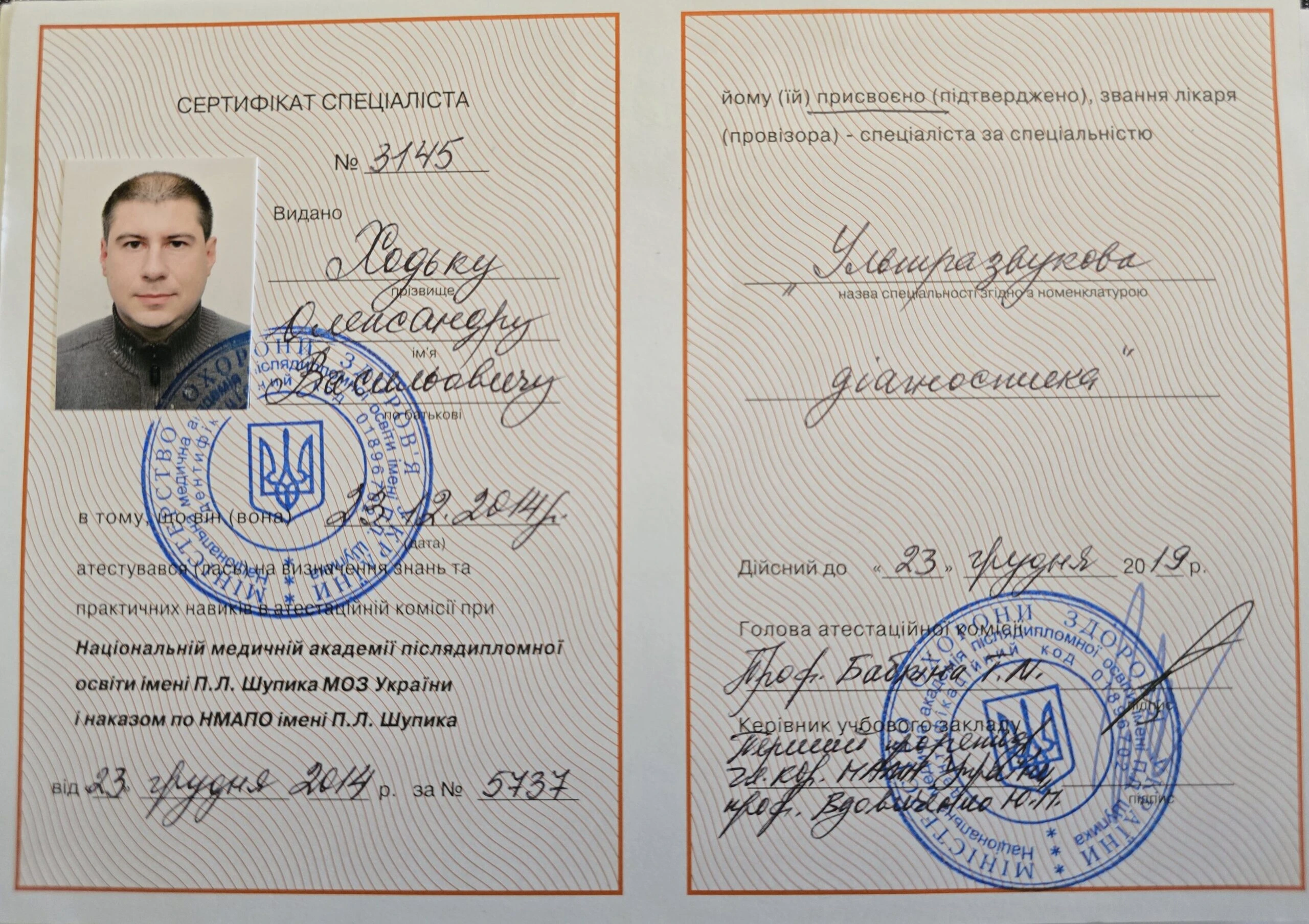 • Курс «Ультразвукова діагностика», на базі Національної медичної академії імені П.Л. Шупика