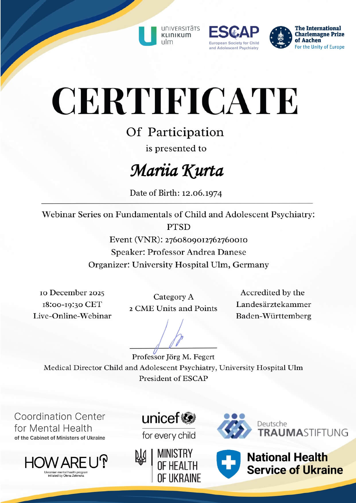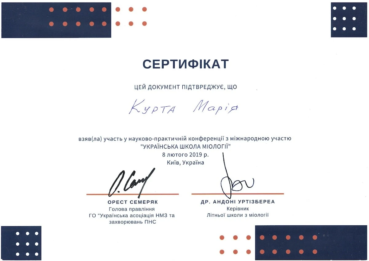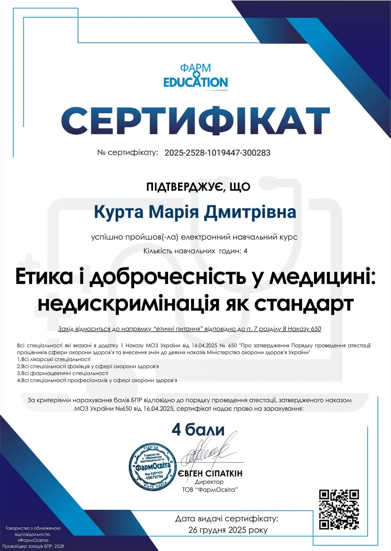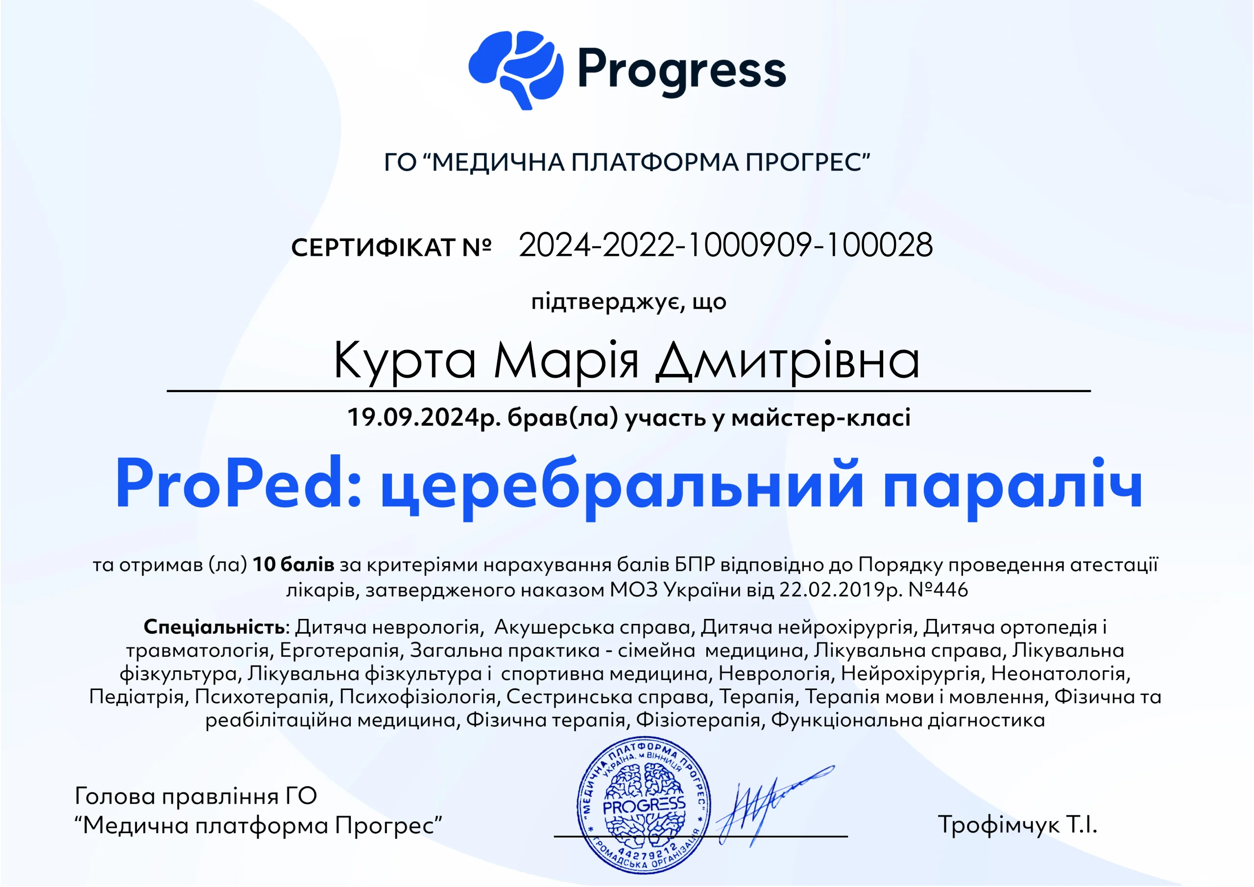 • Національна медична академія післядипломної освіти імені П. Л. Шупика, «Дитяча неврологія», 2006