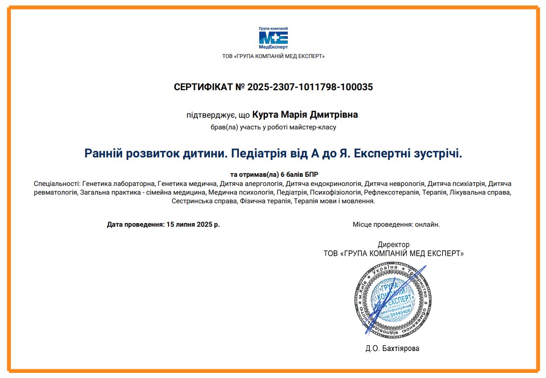 • Майстер клас "Ранній розвиток дитини. Педіатрія від А до Я. Експертні зустрічі.", 2025
