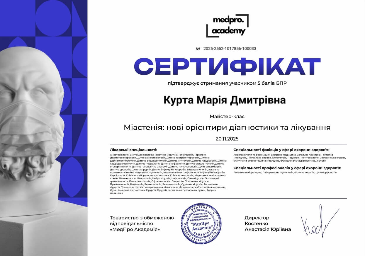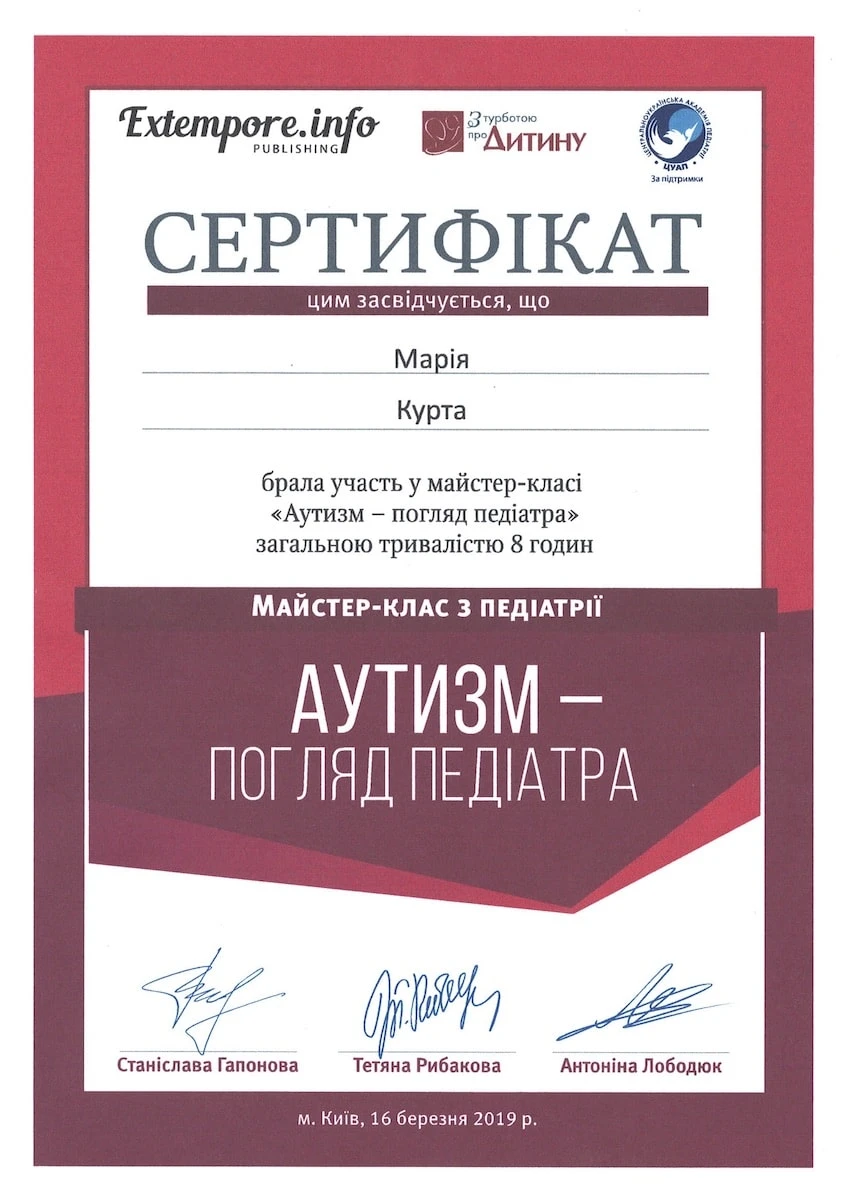 Дуже задоволена консультацією. Марія Дмитрівна все доступно пояснила, швидко і професійно оцінила стан дитини. Дуже дякую