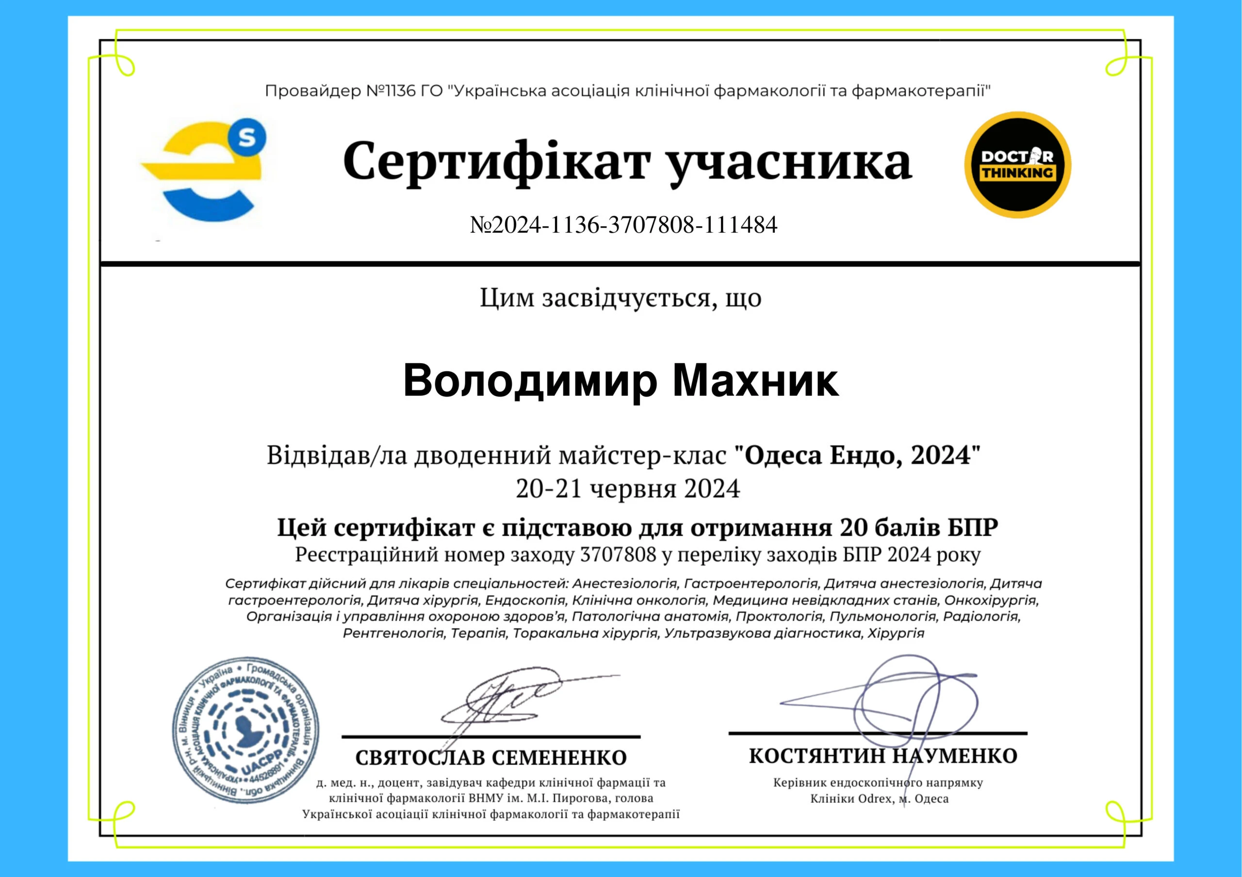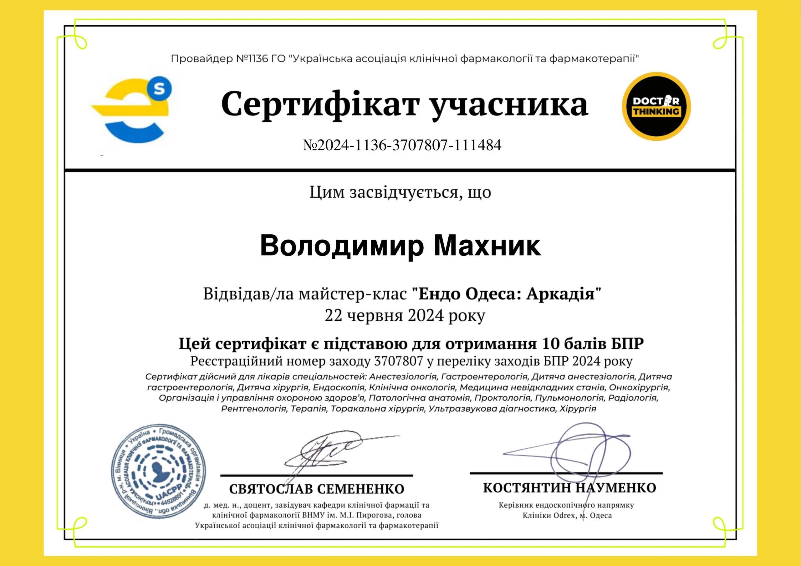 Лікар-ендоскопіст, хірург першої категорії
