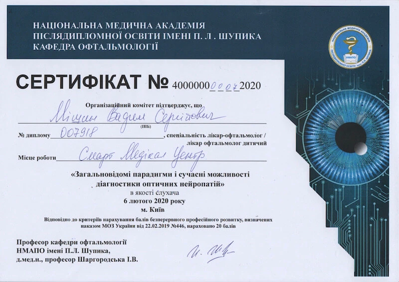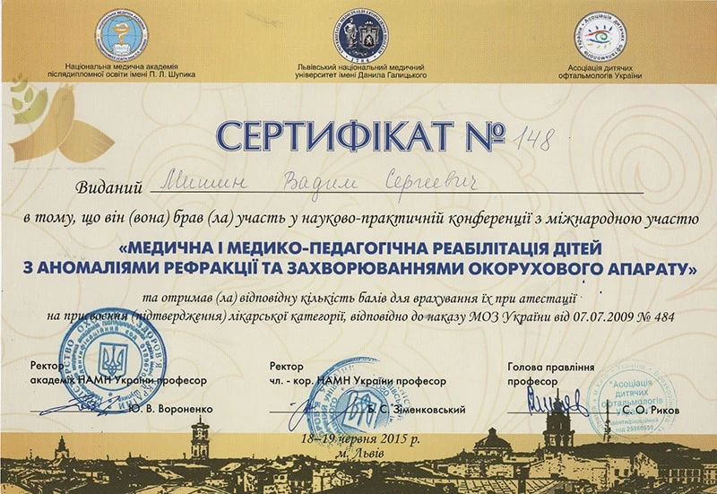 • Національна медична академія післядипломної освіти імені П.Л. Шупика, «Дитяча офтальмологія», 2011