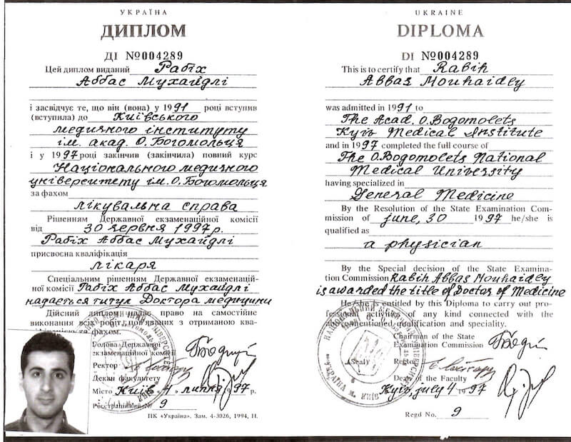 • Національний медичний університет імені О. О. Богомольця, «Лікувальна справа», 1997