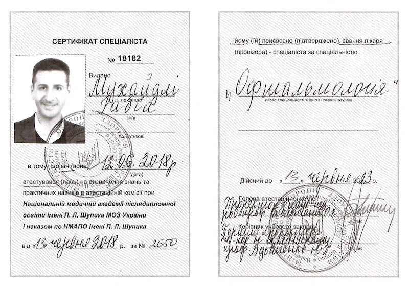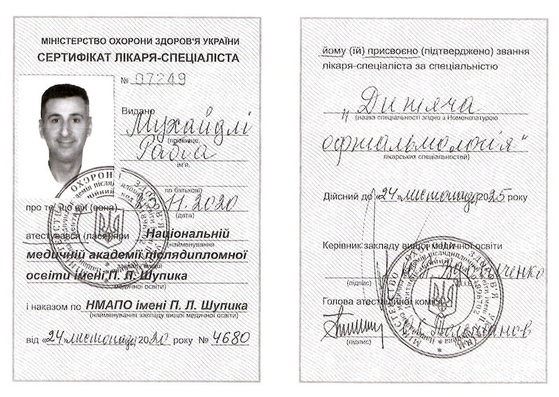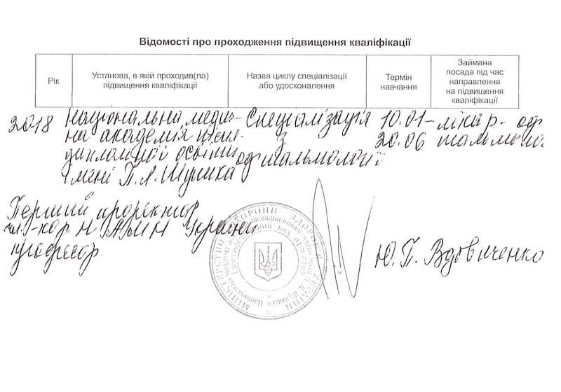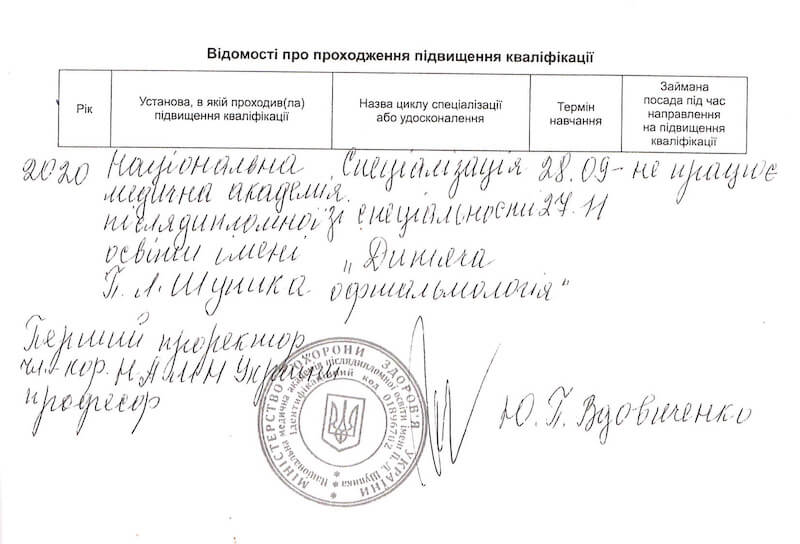 • Національну медичну академію післядипломної освіти імені П. Л. Шупика, «Офтальмологія», 2018