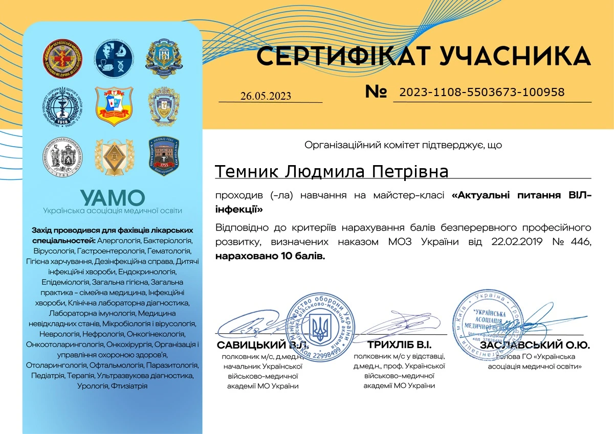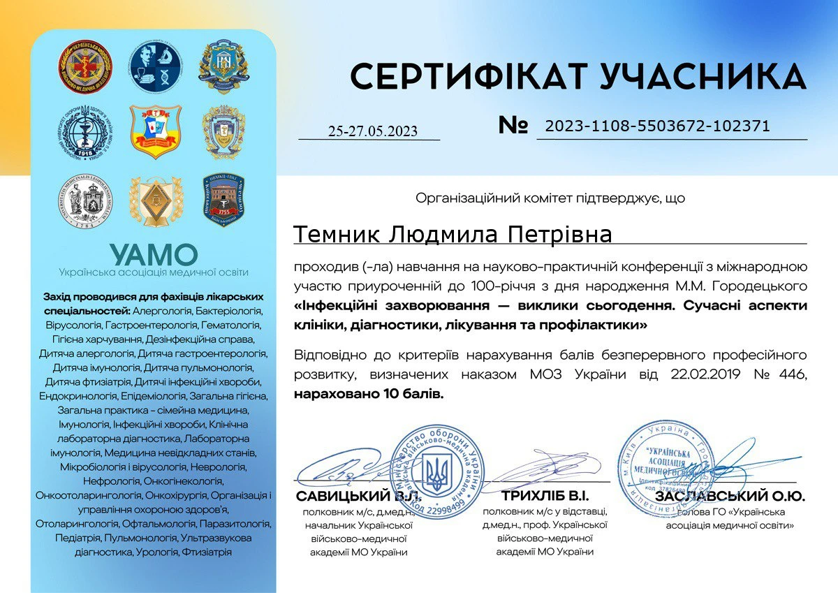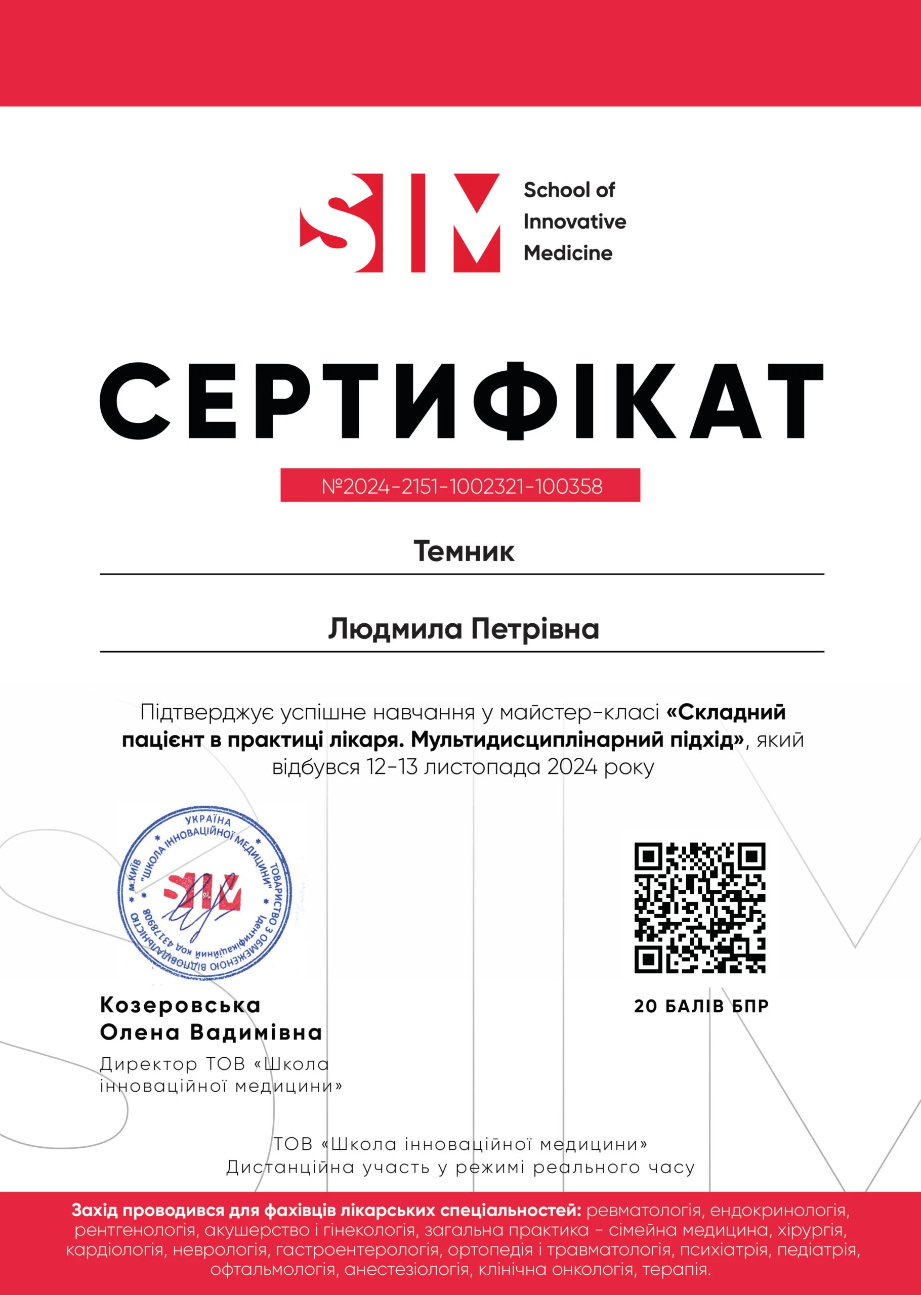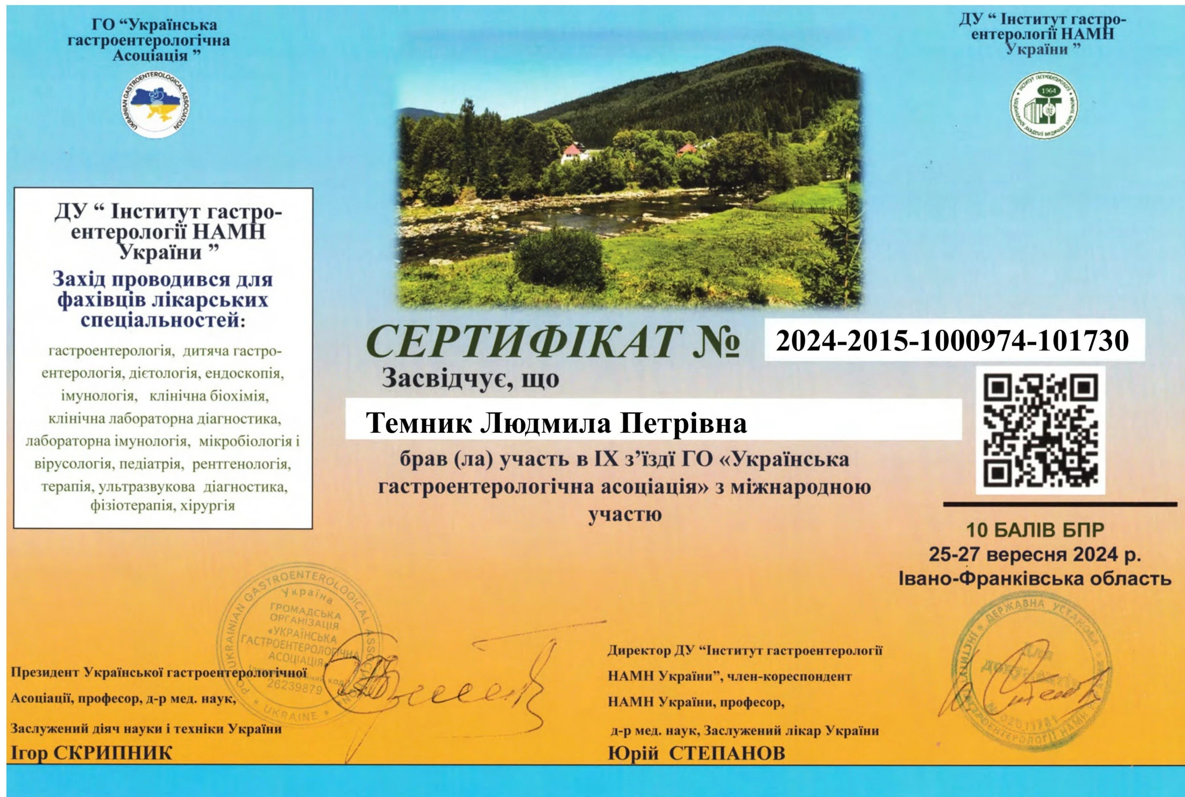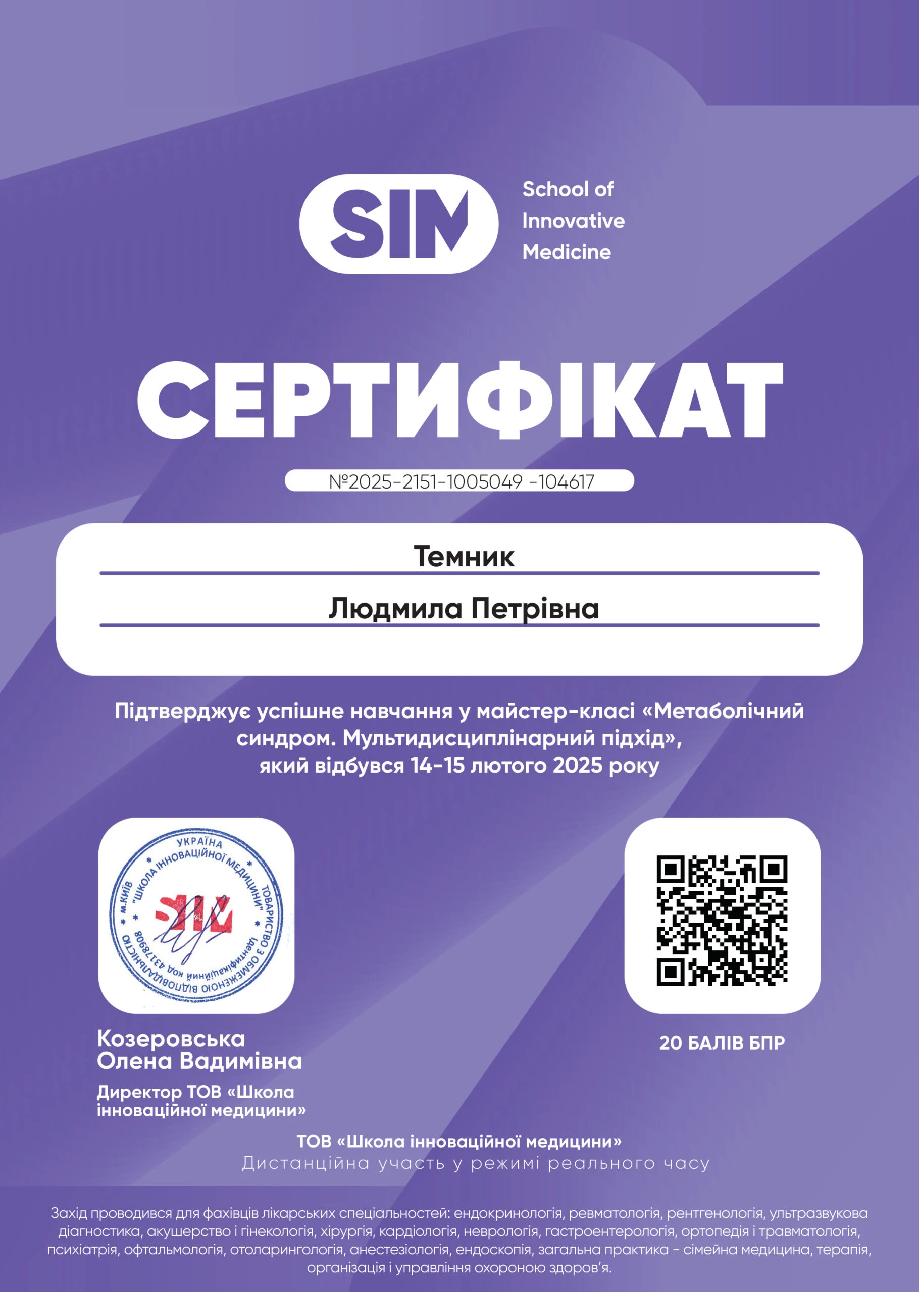• Тематичне удосконалення «Сучасні аспекти клініки, діагностики та лікування захворювань внутрішніх органів», 2025