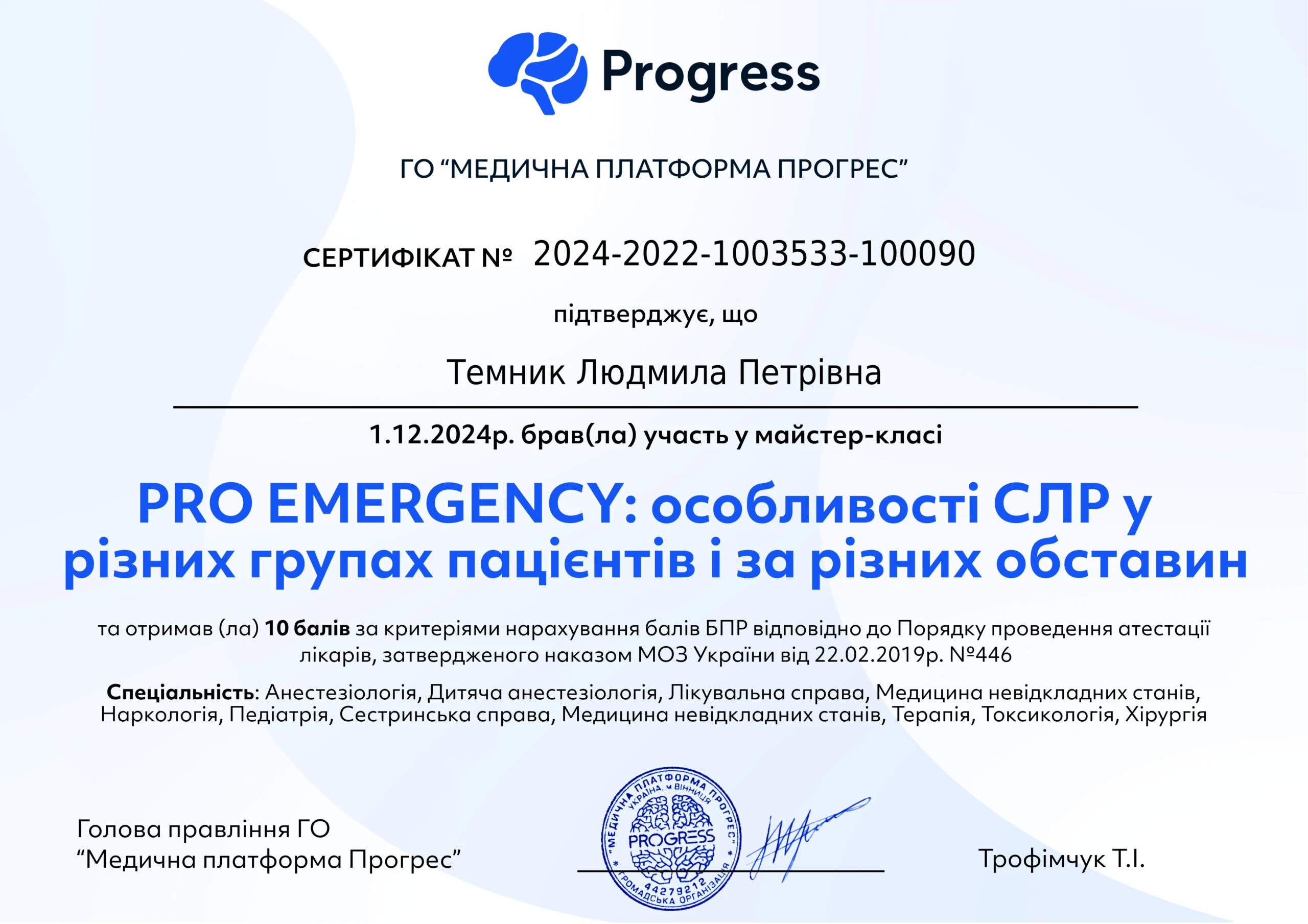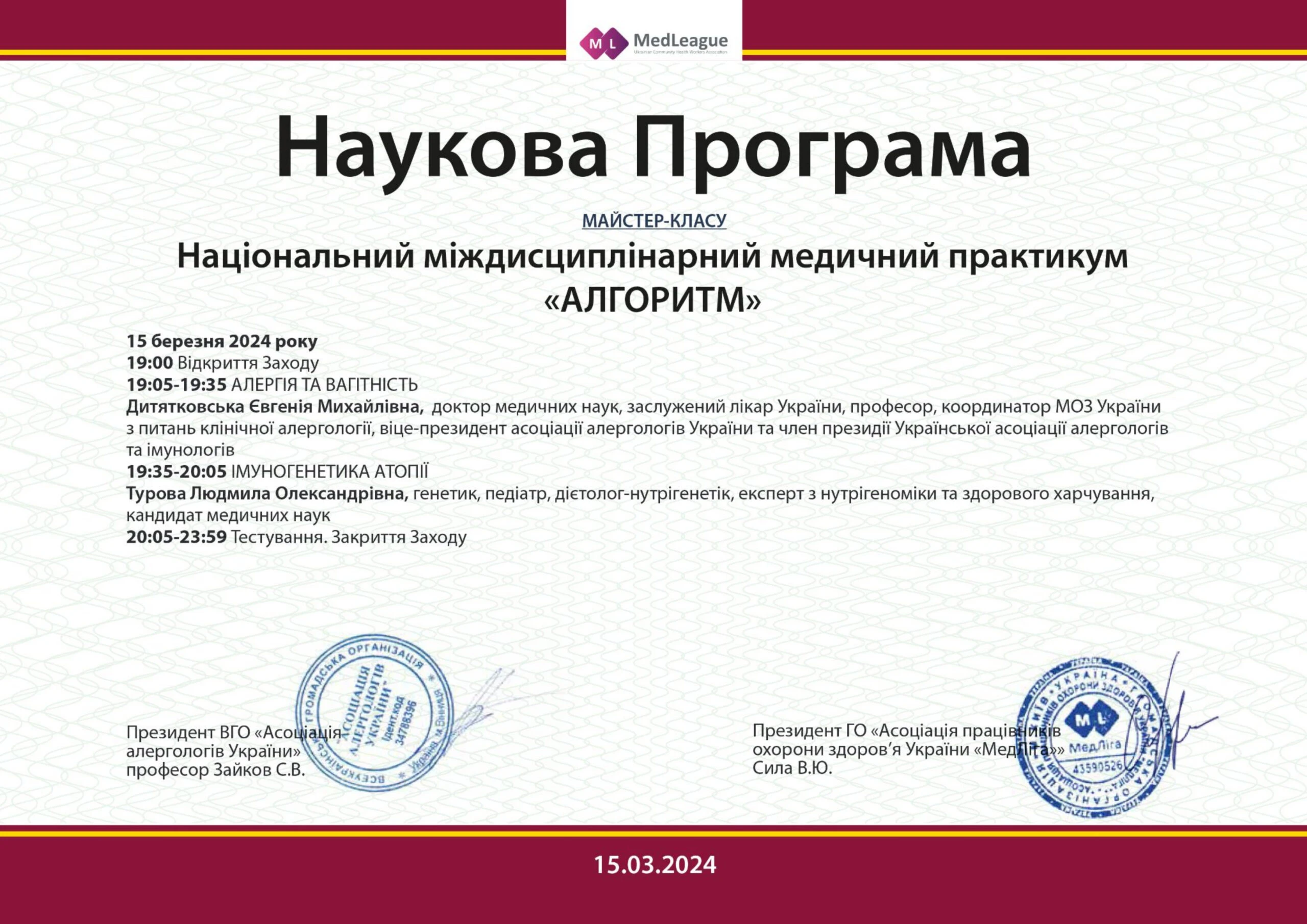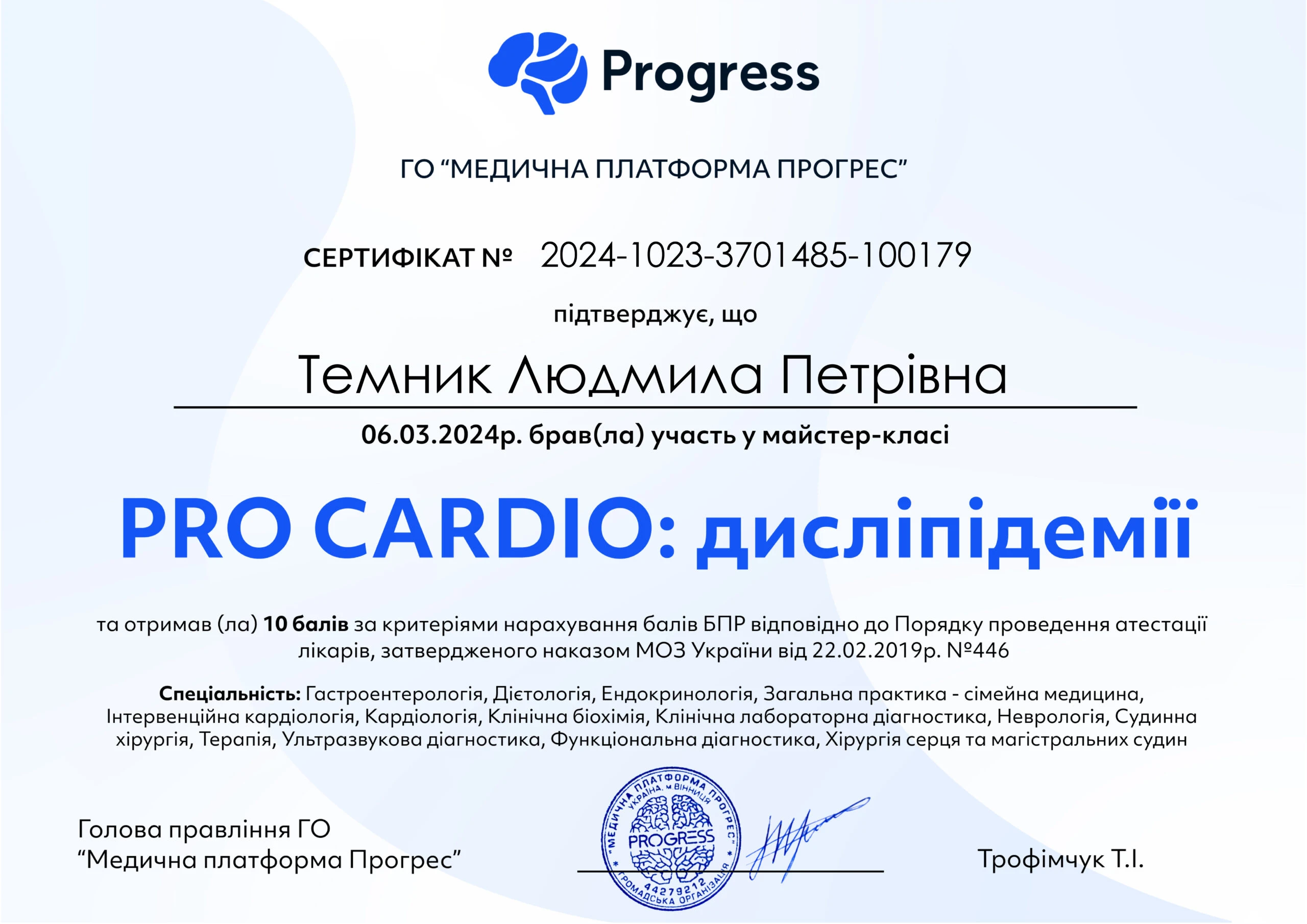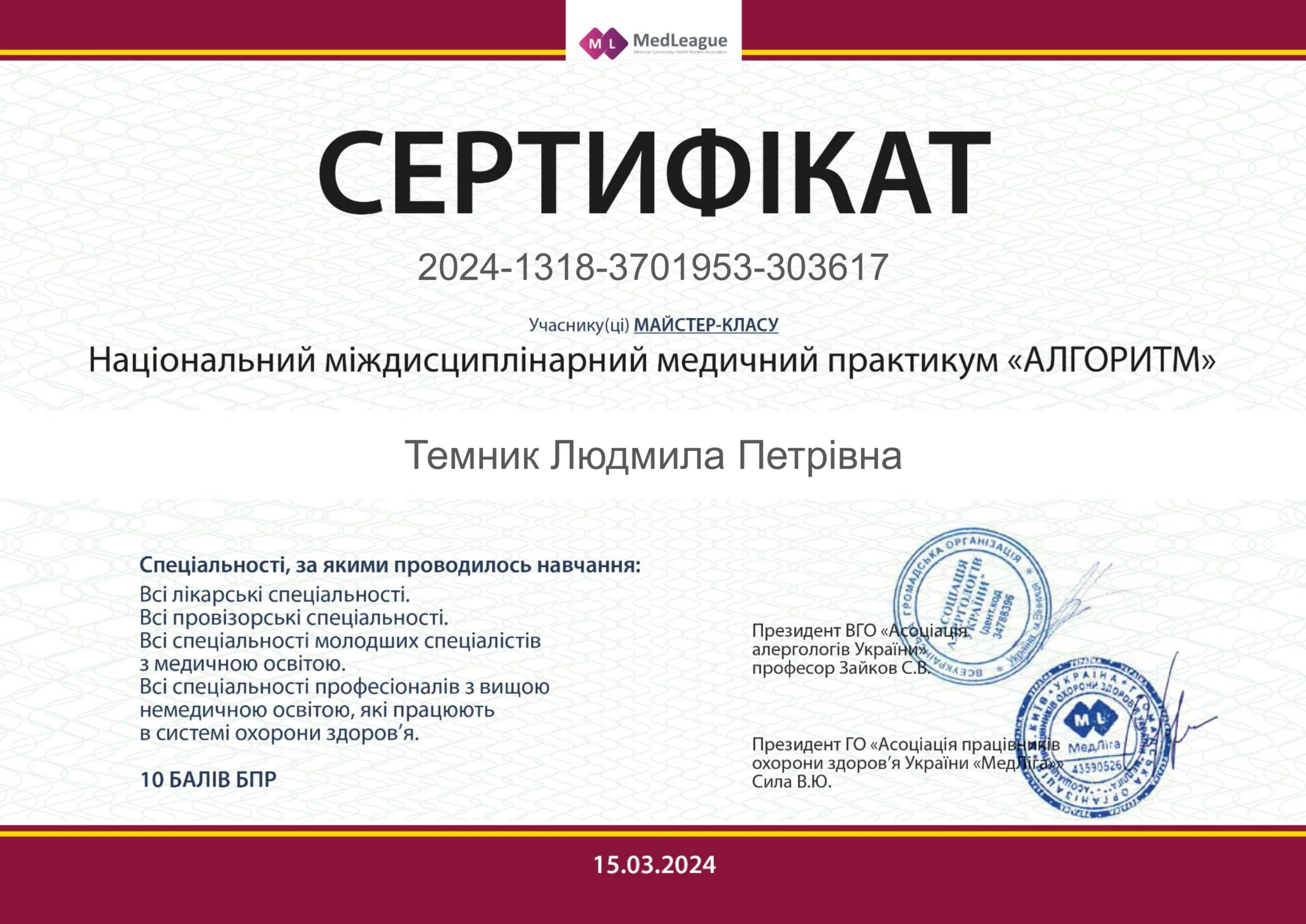 • Тематичне удосконалення «Сучасні аспекти клініки, діагностики та лікування захворювань внутрішніх органів», 2025