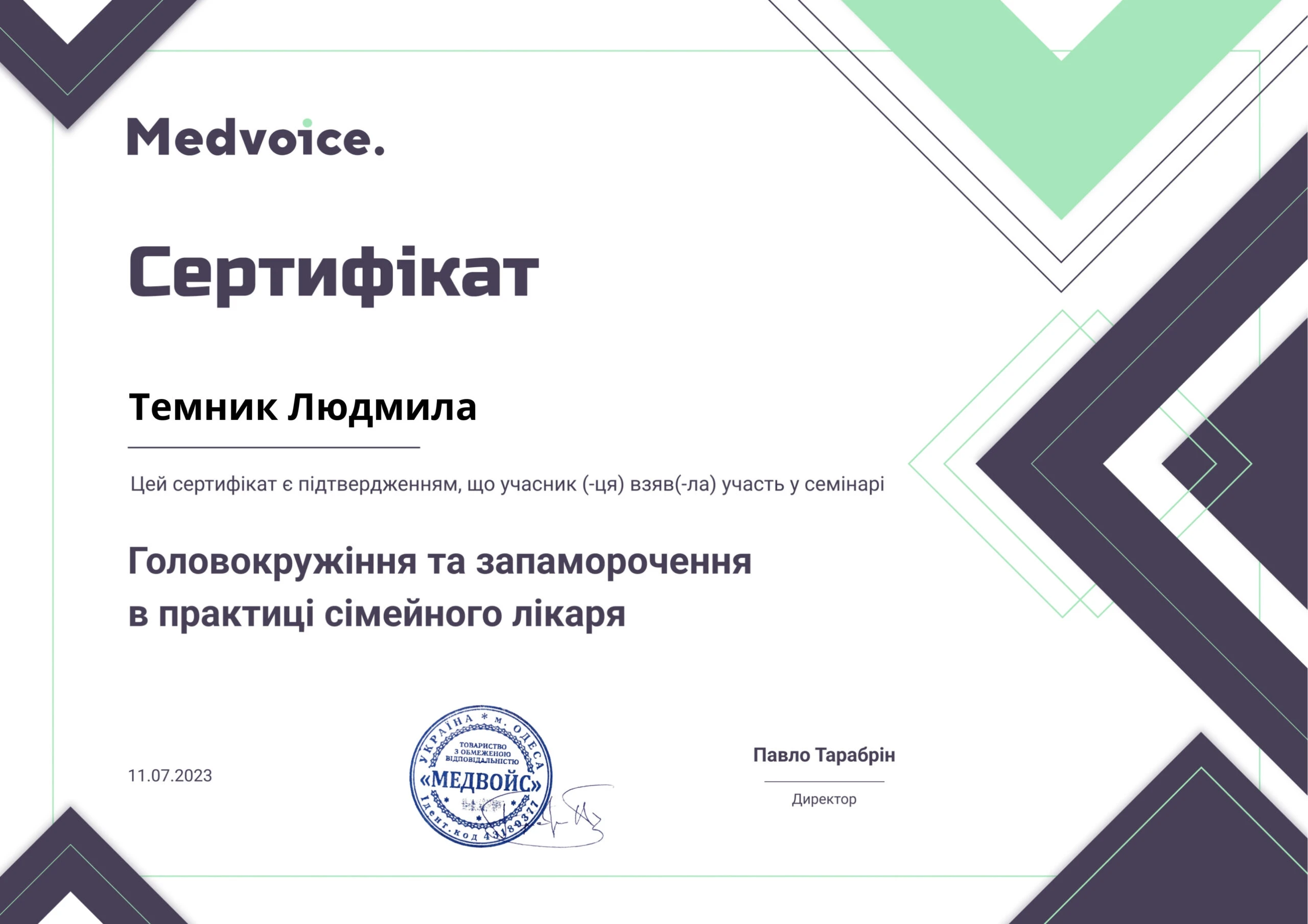 Лікарка Темник Людмила Петрівна, дуже грамотна та досвідчена. На прийомі все сподобалось.