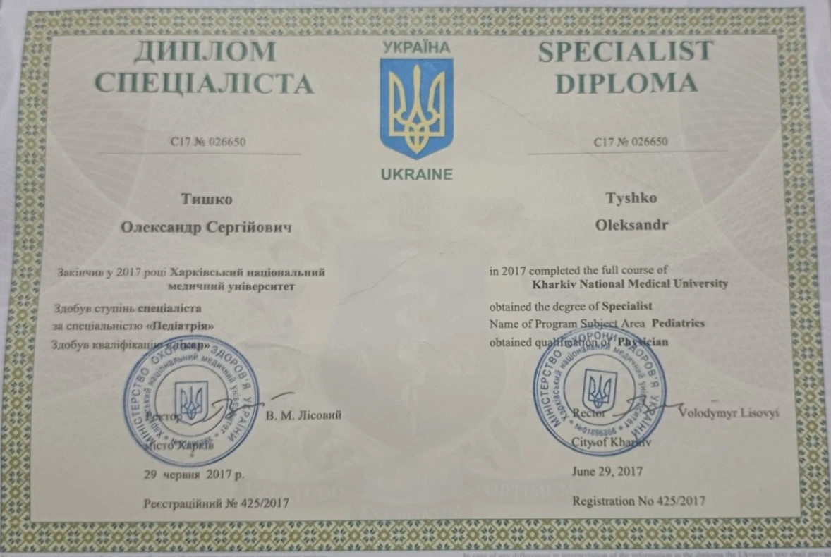 Хочу подякувати лікарю Тишку О.С за швидку та якісну розшифровку! Миттєво відреагував на наш запит і прохання! Однозначно раджу.