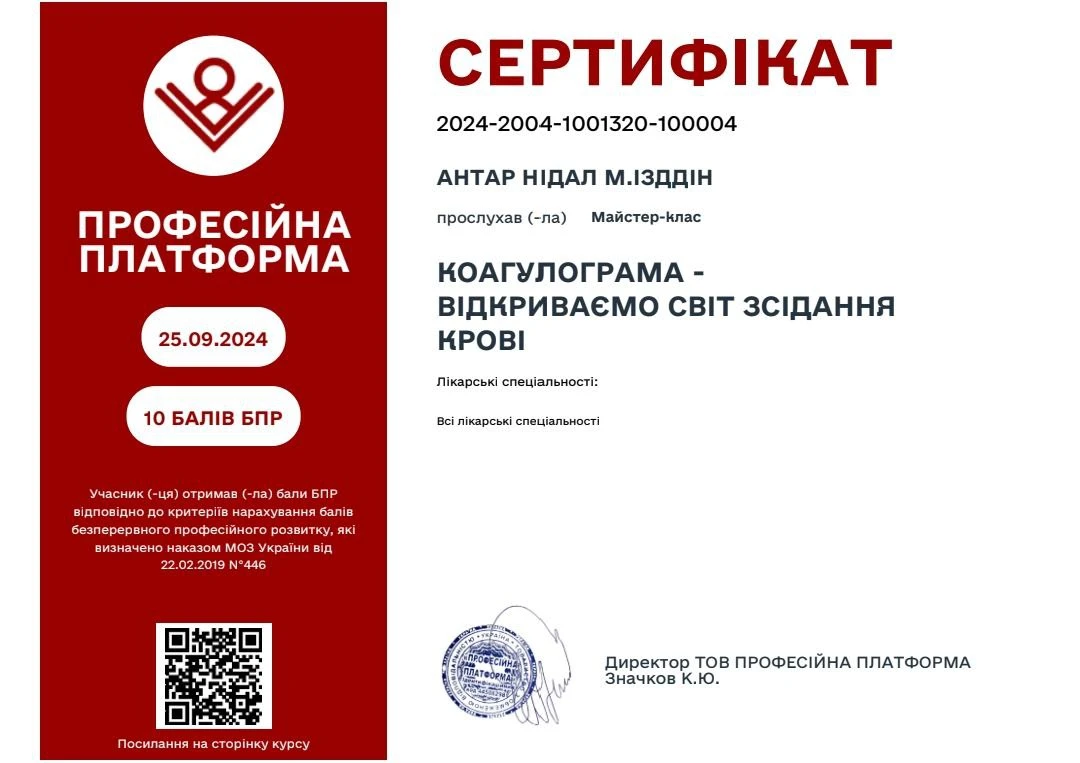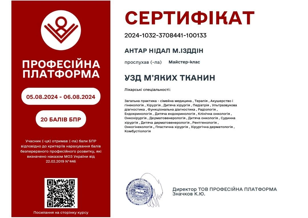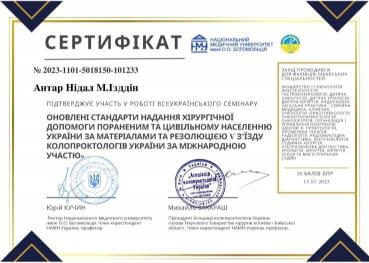 • Національна медична академія післядипломної освіти імені П. Л. Шупика, «Загальна хірургія», 2006