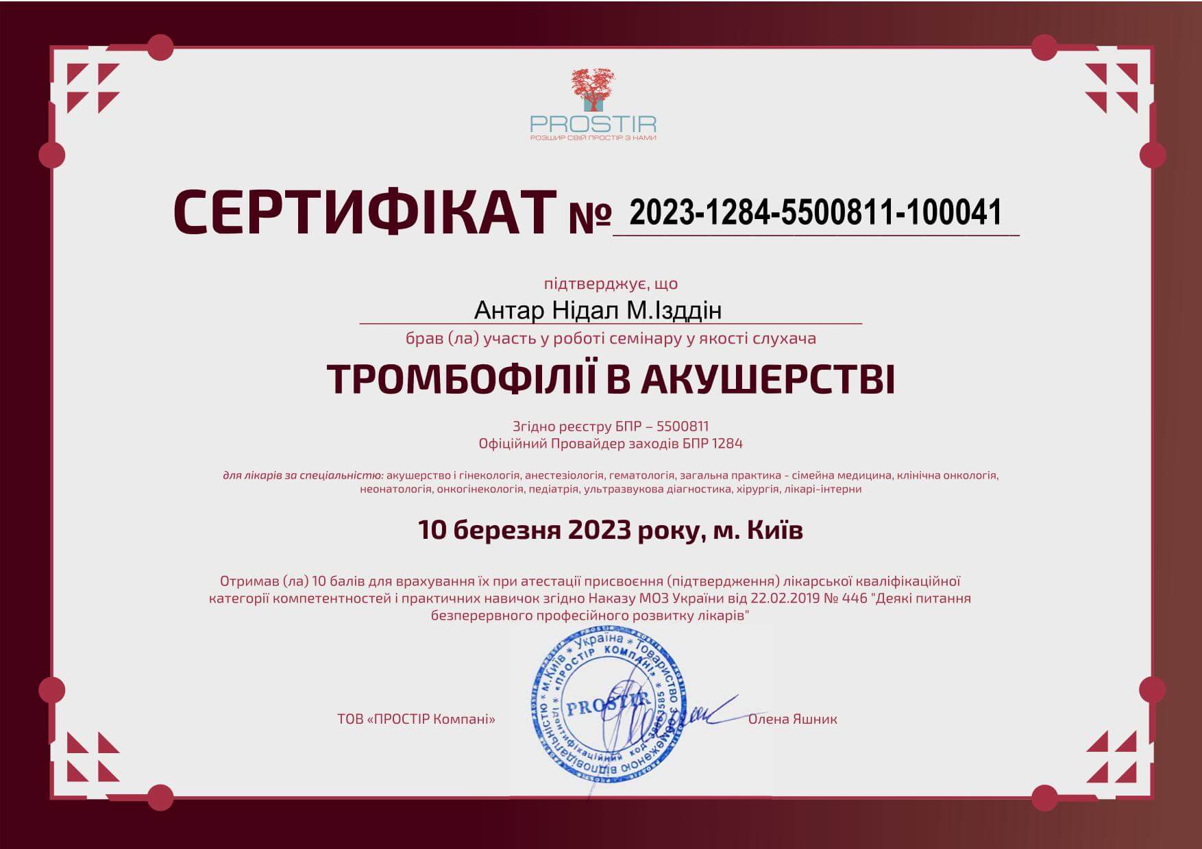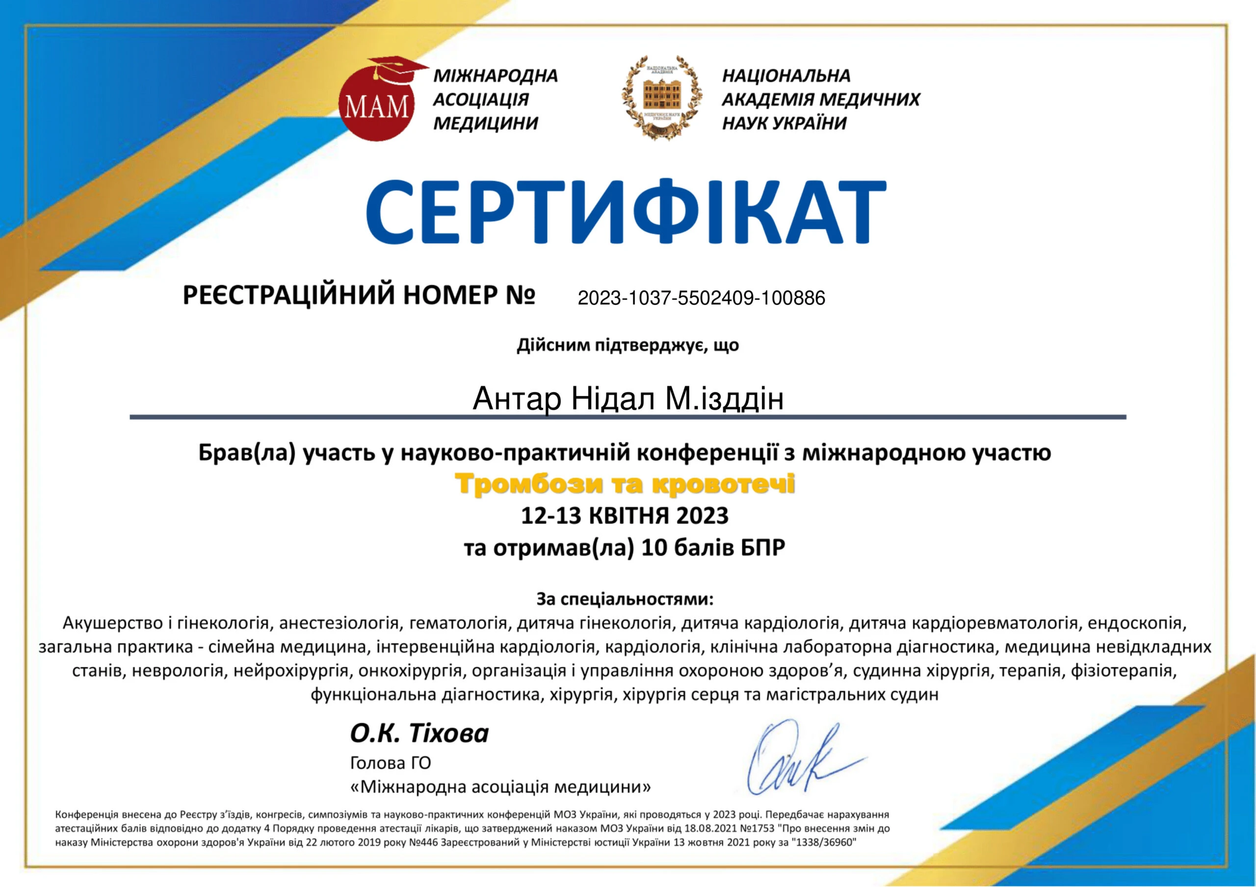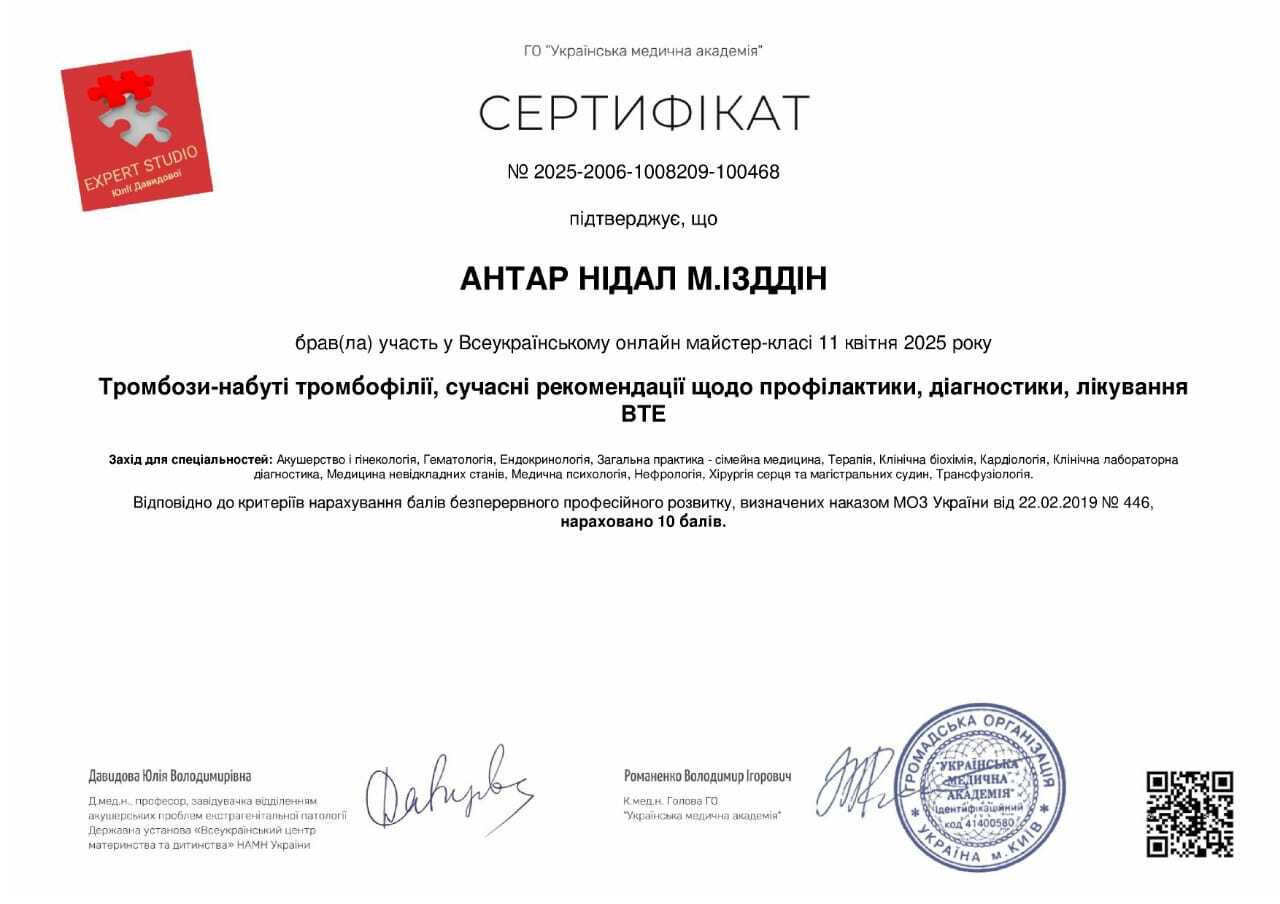 Сьогодні була на огляді у пана лікаря Антар Нідал Мухаммедович і хочу подякувати за позитивний досвід. Пан лікар провів огляд, все пояснив, дав поради. Професійно, доброзичливо, уважно. Сміливо можу порадити цього спеціаліста і саму клініку. Дякую!