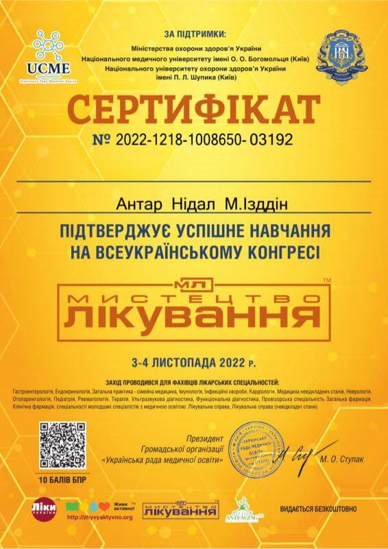 Дуже вдячна лікарю Антар Нідал М. Ізддін за уважне та відповідальне ставлення. Кваліфікований хірург та приємна людина. Вдячна персоналу клініки за їх професіоналізм та високу кваліфікацію.