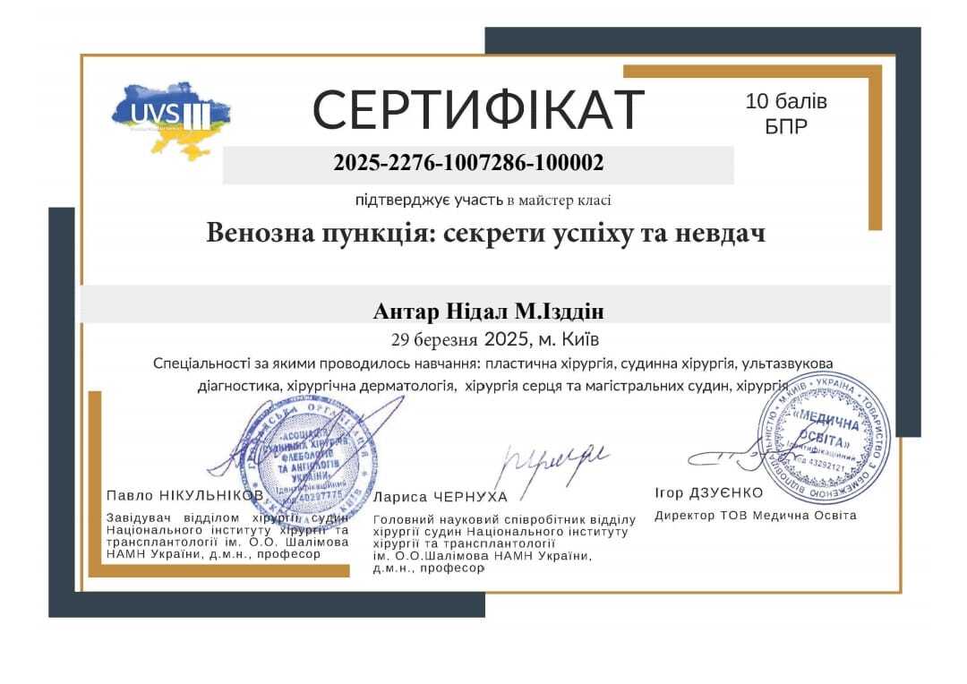 • Національна медична академія післядипломної освіти імені П. Л. Шупика, «Судинна хірургія», 2012
